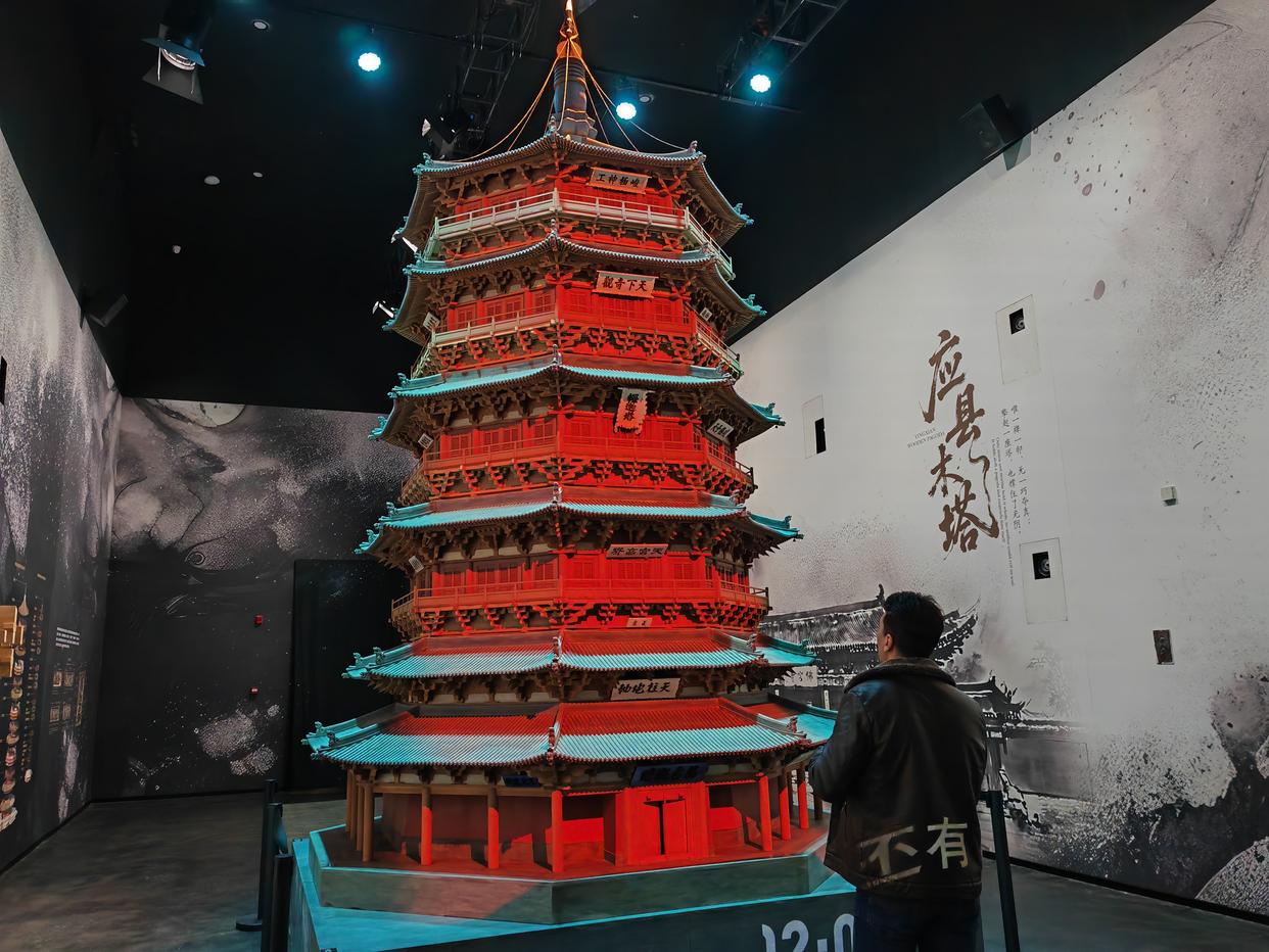 1月14日,在山西省太原市举办的“《黑神话:悟空》遇见山西——古建数字艺术展”上,一名埃及留学生在参观应县木塔模型。新华社记者 解园 摄 来自广东深圳的美术老师黎润航对此深有感受,他已经连续多年暑期来山西参观和临摹。回到学校后,他将自己临摹的作品介绍给学生们,从而激发更多孩子对古建之美的认识。