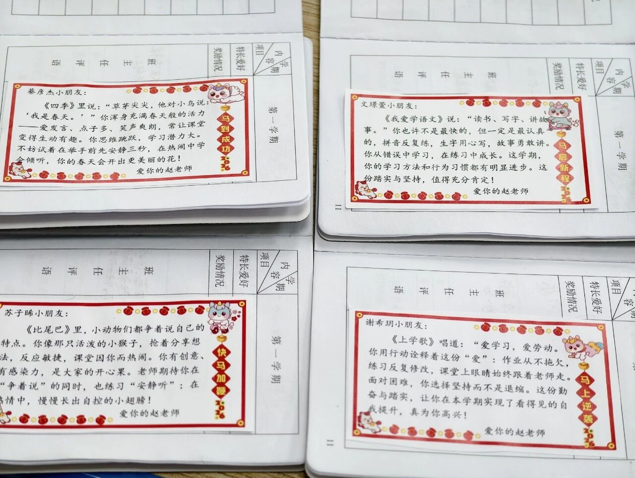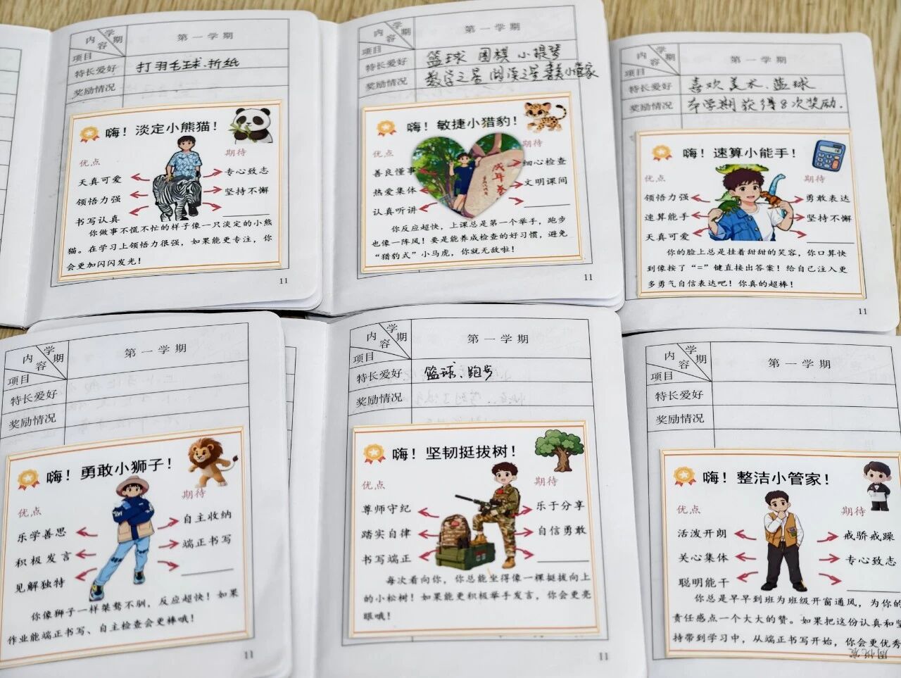 Q萌简笔画、治愈小诗、解谜卡片、成长密码……老师们写下、画下的评语各有精彩。“在我校,评语早已跳出‘评价’的刻板框架。大家的共识是,打破‘唯分数论’,让孩子从有温度、有心跳、好玩又戳心的评语中读出‘自己的闪光点有被看到’。”该校校长高洪琳说。