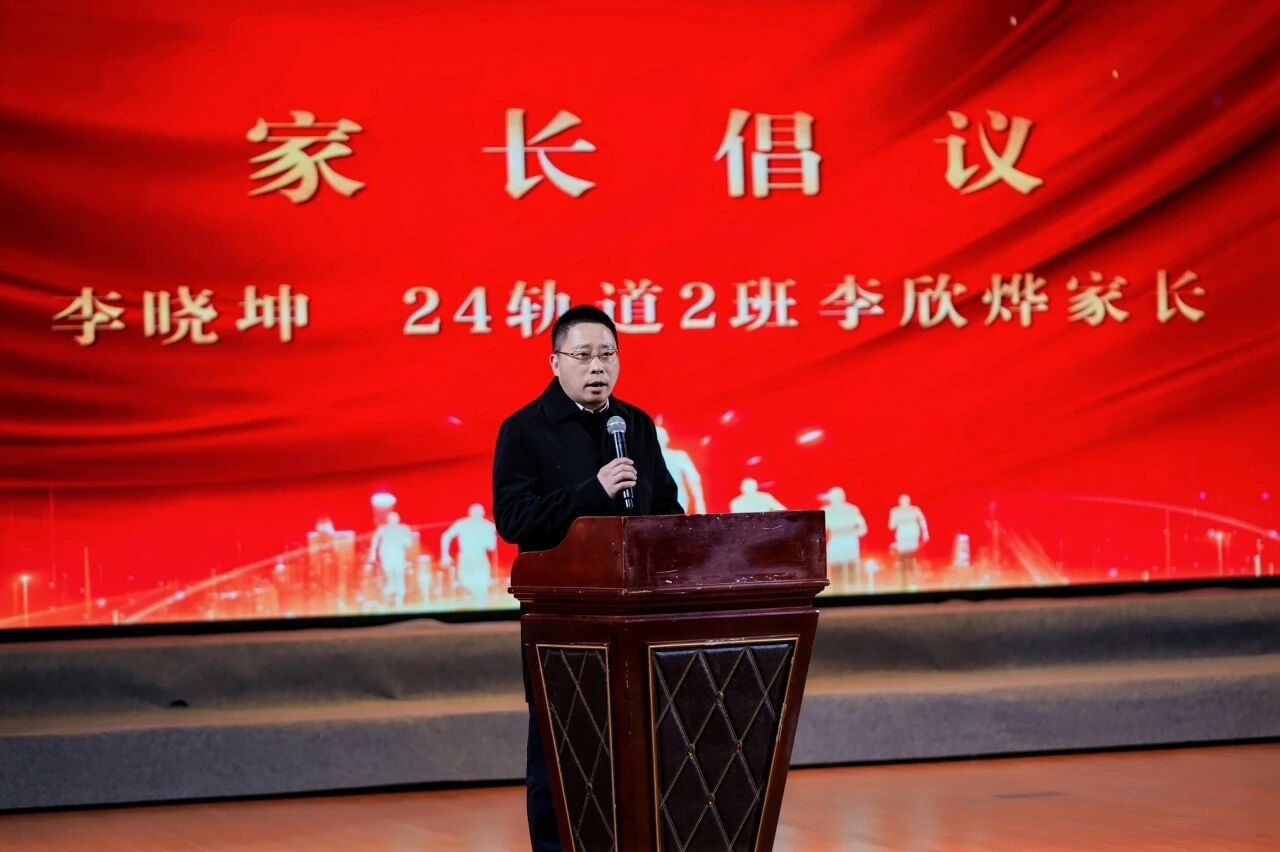 协同育人,家庭是不可或缺的一环。活动现场,2024级轨道二班学生李欣烨的爸爸代表登台,向全体家长发出了一份真挚倡议:从“做孩子耐心的聆听者”到“成为学校教育的理解者和支持者”。倡议呼吁家长落实学校要求、积极参与校园活动、与老师正面沟通,共同筑牢家校合作的根基。