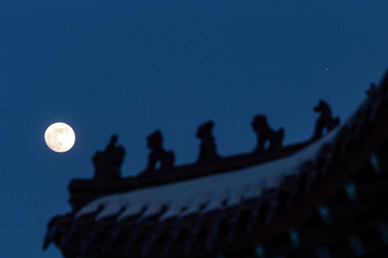 1月31日,在黑龙江省嘉荫县,雪雕与木星伴凸月相映成趣。新华社发(李绍军摄)