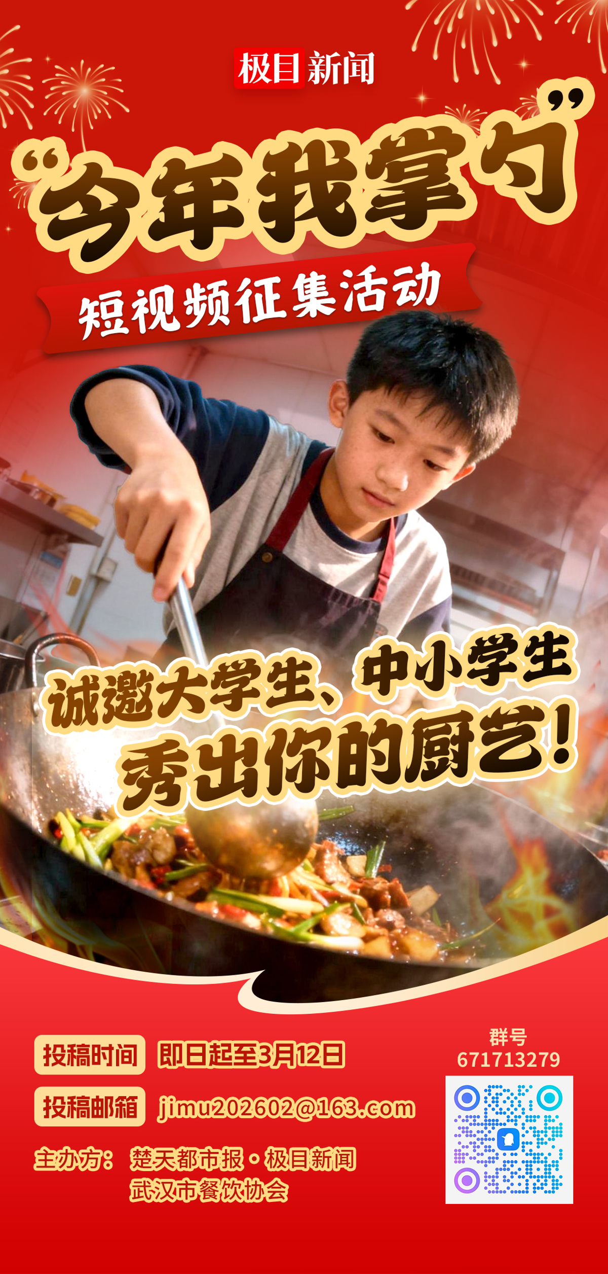 2月2日至3月12日,楚天都市报·新闻联合武汉市餐饮协会,举办“今年我掌勺”大中小学生短视频征集活动。活动为期约一个月,面向在校学生,以烹饪技能为主题,征集原创短视频作品。