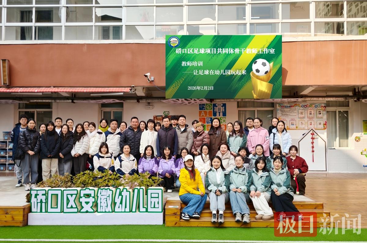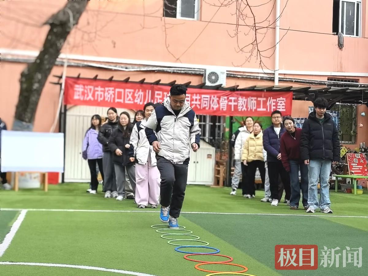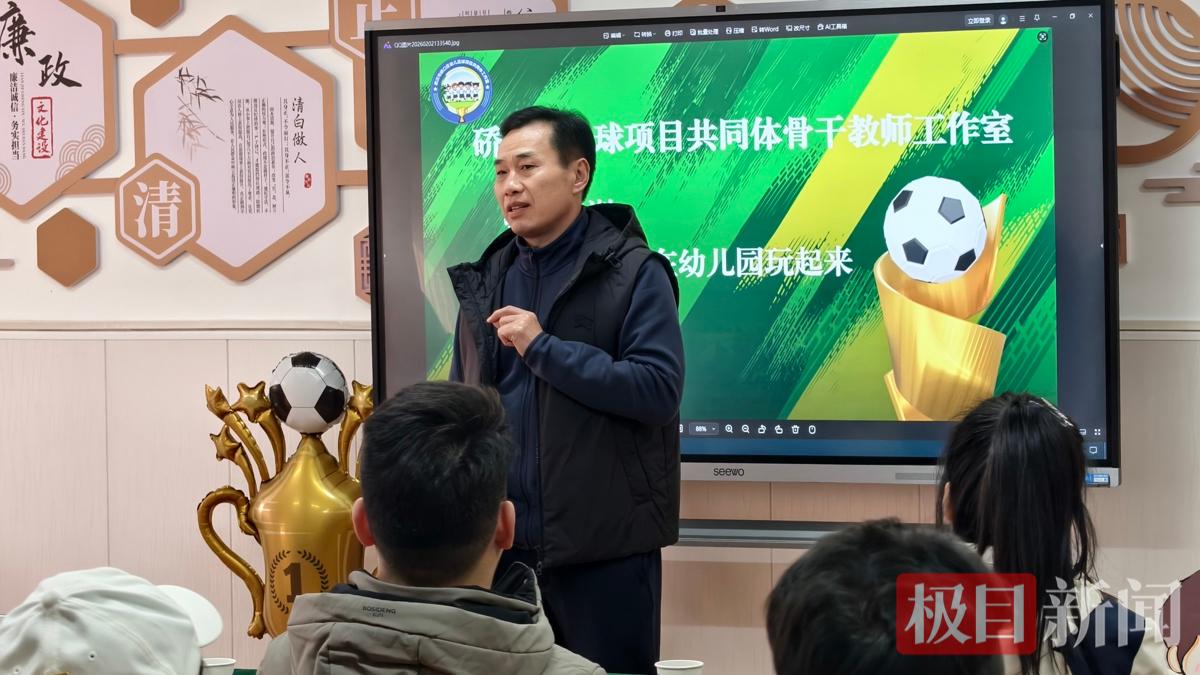 “原来带娃踢足球,不用教复杂技巧,玩个‘采蘑菇’游戏就能练球感!”2月2日下午,武汉市硚口区幼儿足球项目共同体骨干教师工作室首次线下培训在安徽幼儿园热闹开讲,现场欢声笑语不断。