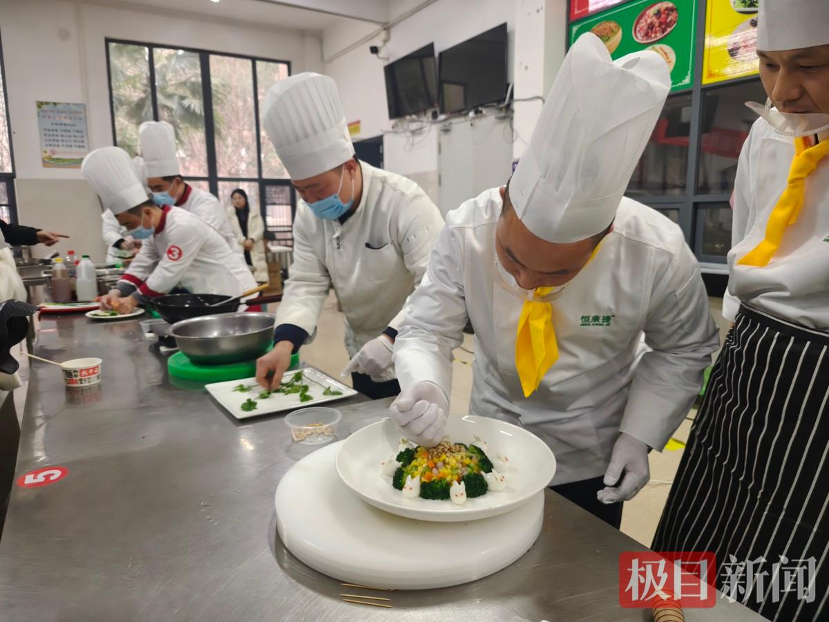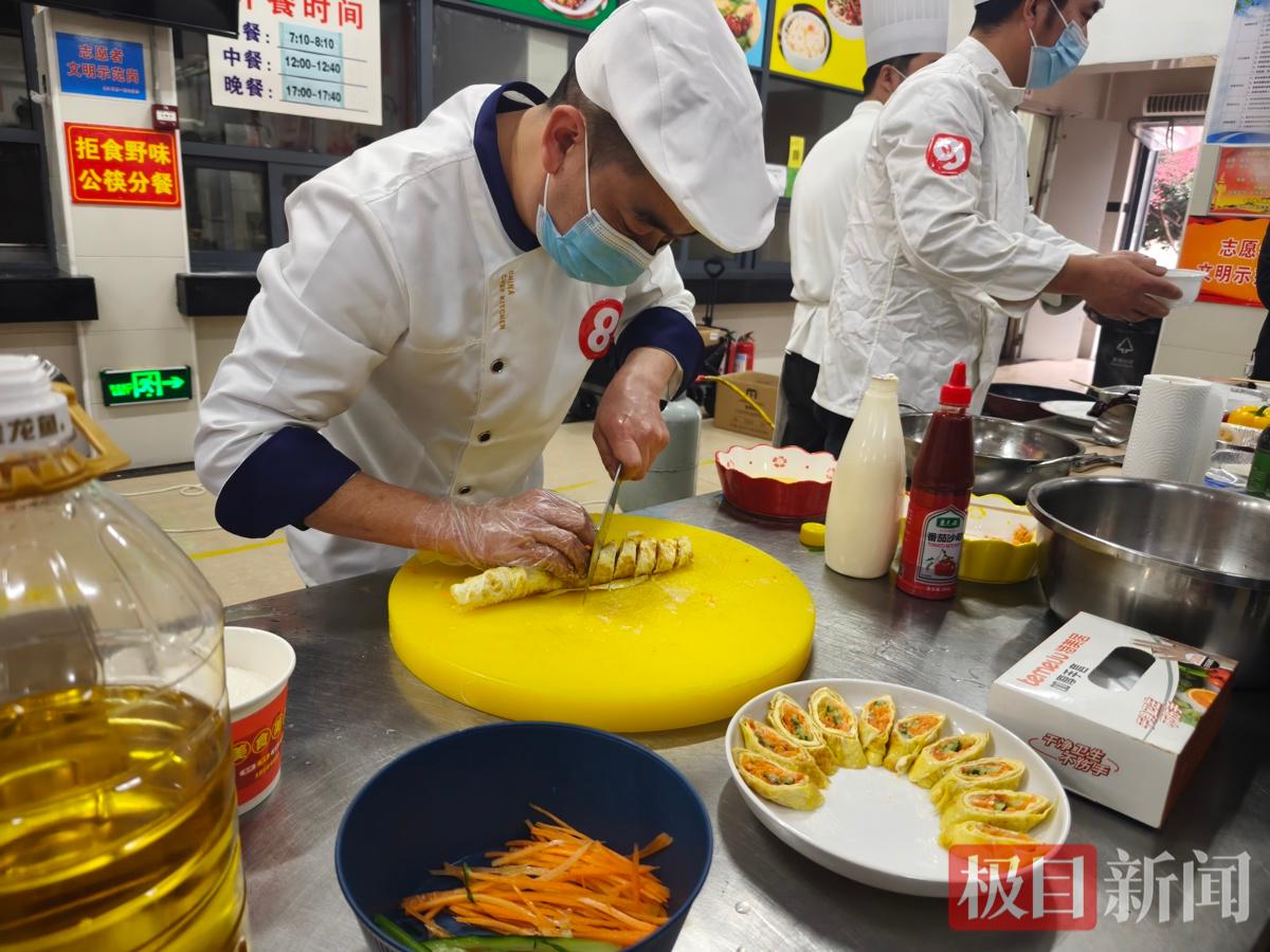 一根土豆丝切得细如发丝、厚薄均匀,青椒去籽以防呛口,甜辣比例都要精准拿捏……2月5日下午,武汉市硚口区中小学食堂厨艺比赛在武汉市第一聋哑学校拉开帷幕,11支由区内学校与食材供货商联合组成的厨师队伍同台竞技。这场以“传承饮食文化·创新健康美味”为主题的比赛,不仅是一场厨艺的较量,更是一次对学生餐桌安全与营养健康的集中展示。
