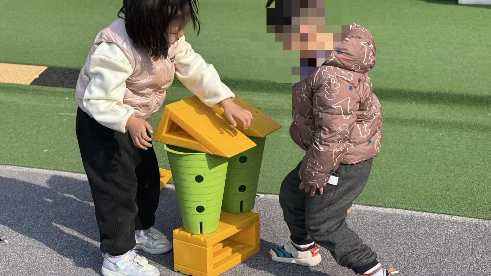 社交挑战随之浮现。笑笑曾把银耳汤倒入旁边小朋友碗中,户外推倒别人积木。向蕊理解这是他缺乏社交技巧的表现,每次分三步引导:立即温和制止并说明规则、示范正确做法、创造成功体验并给予鼓励。