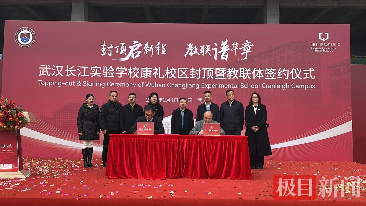 2月4日,武汉长江实验学校康礼校区封顶暨教联体签约仪式在盘龙城经济开发区项目现场举行。黄陂区领导、黄陂区教育局、东湖风景区教育局、相关学校及建设单位代表出席活动。