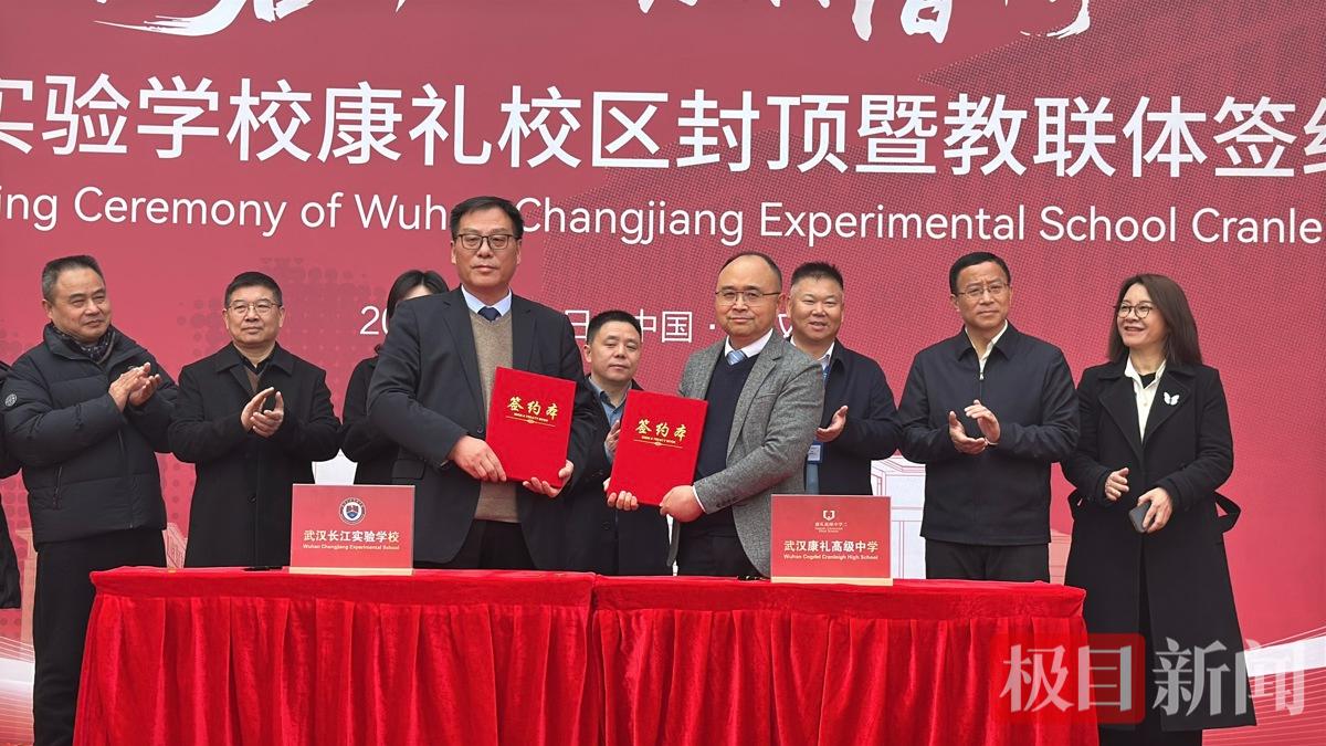 仪式上,武汉康礼高级中学与武汉长江实验学校签署教联体合作协议,双方将在协同发展、资源共享等方面加强协作。
