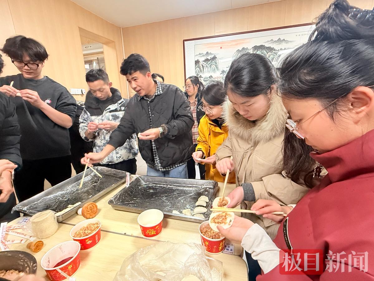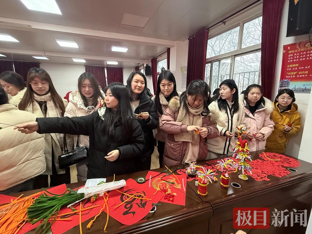 在团队协作环节,教师们分组参与“巧手扭趣”“重走长征路”和“车轮滚滚”三项活动。尤其在“重走长征路”中,老师们共同控制巨幅喷绘布上的网球沿路线前行,过程中默契配合、互相补位,在协作中感受团结前行的精神。随后的包饺子活动则让现场洋溢着“家”的温暖,老师们手法娴熟,创意纷呈,在热气腾腾中共话情谊。