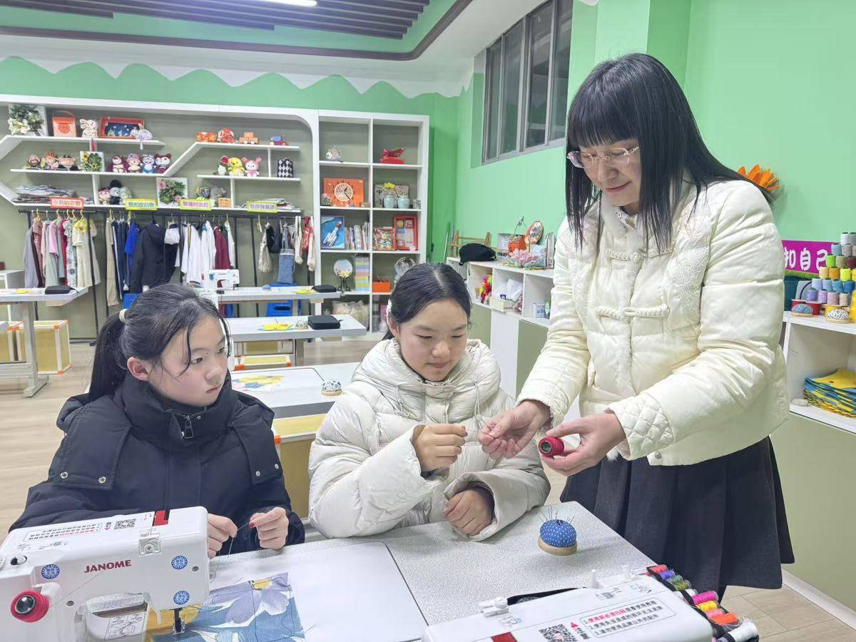 寒假前,学校告知学生们,假期功能室不打烊,希望继续参加缝纫学习的同学可随时返校,值守老师随时为返校学生提供指导。