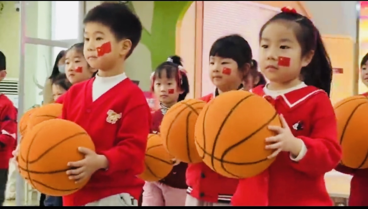 大班幼儿更是点燃全场。音乐响起,孩子们手持彩色篮球,连续完成花样拍球动作,弧线整齐划一。偶尔失误时,同伴的加油声迅速化解紧张。随后的二十四节气诗歌表演中,从“立春阳气转”到“大寒雪未消”,孩子们将节气知识与农事场景编成童谣,配上自编手势舞,在灵动演绎中传递传统文化韵味。