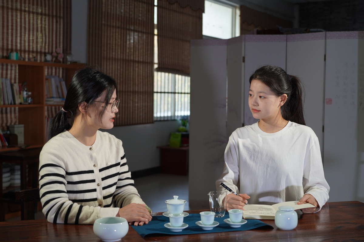 积累从未停步。去年暑假,她在武汉“老门茶馆”实习,观察服务细节;在“船长9号”游轮策划近百场茶艺展演,用宋式点茶向中外游客讲述茶文化。一次,一位外国游客在表演后请她教学“茶”字书写,让她感受到文化交流的真实触达。此外,她带领“三下乡”团队深入茶山,学习手工制茶全程,团队设计的茶旅融合研学方案获校级一等奖。