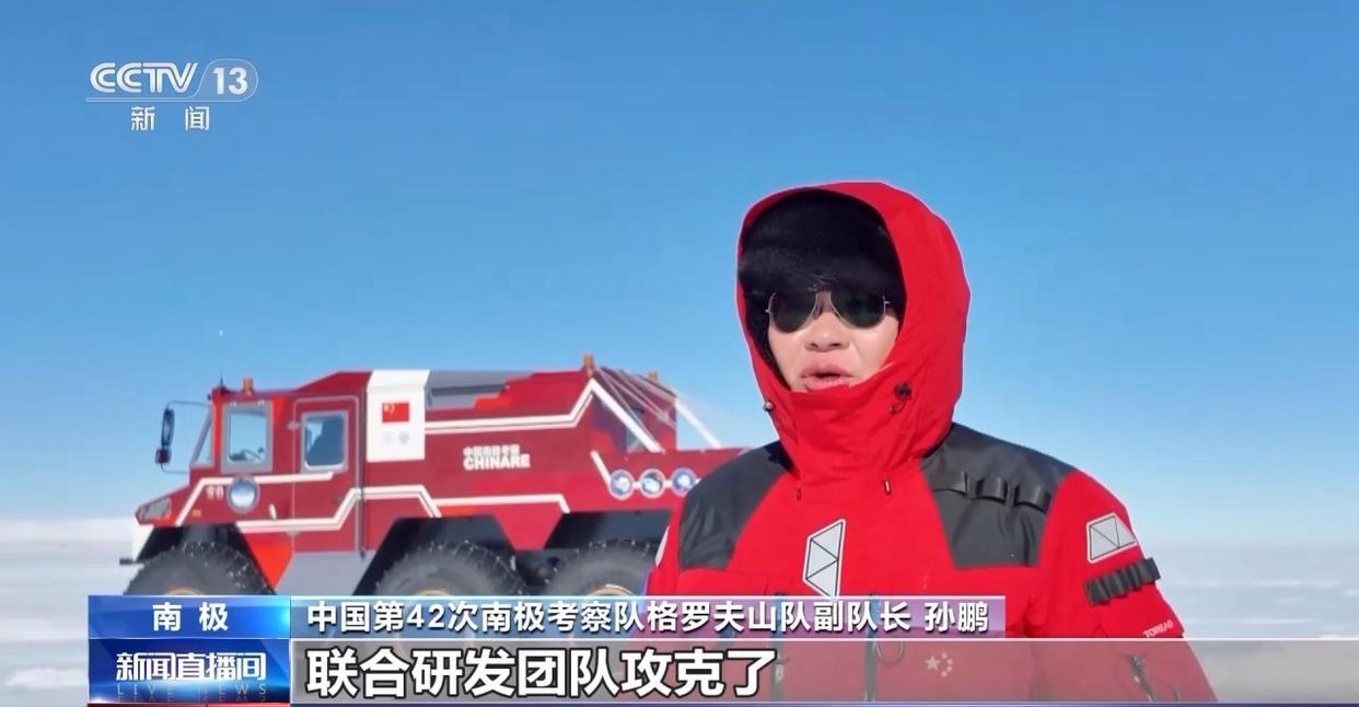 中国第42次南极考察队格罗夫山队副队长 孙鹏:联合研发团队攻克了动力系统极低温快速启动、传动系统高负荷稳定机制、复杂地形抗震悬挂系统、抗低温高弹性复合材料轮胎等一系列工程技术难题。
