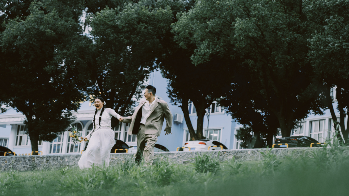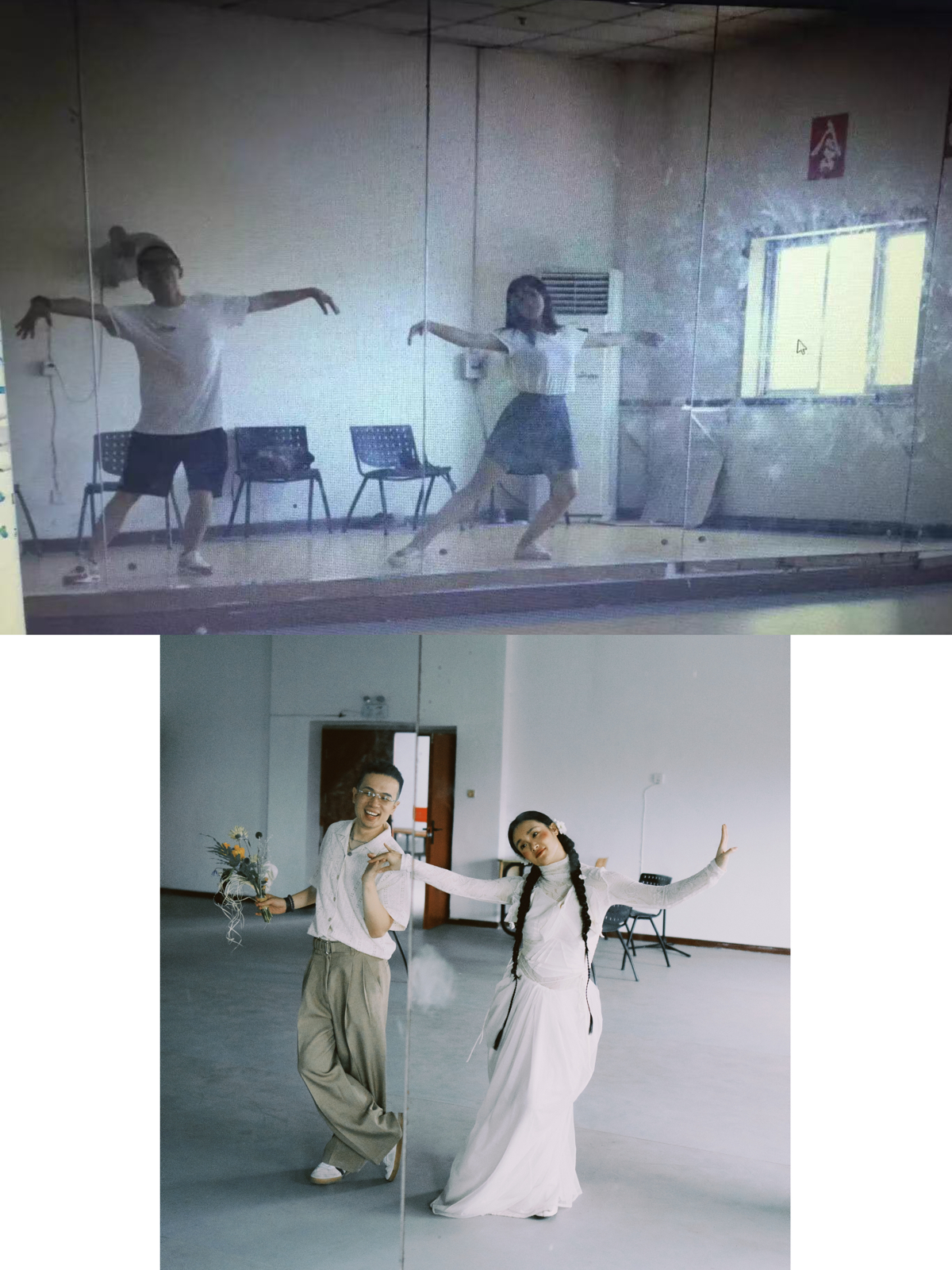 毕业后,两人各自成长、彼此同行。黄彤萼成为一名建筑设计师,夏斯琪则坚守热爱,成为一名舞蹈老师。“他工作虽然忙碌,但从未放下对舞蹈的热爱。我们常在闲暇时一起创作舞蹈作品,他也常常给我带来新的灵感。”新娘夏斯琪笑着分享道。也正因此,他们特意回到母校,在当年曾合影的相同场景拍摄婚纱照,以这样一种充满仪式感的方式,兑现青春时期的约定。