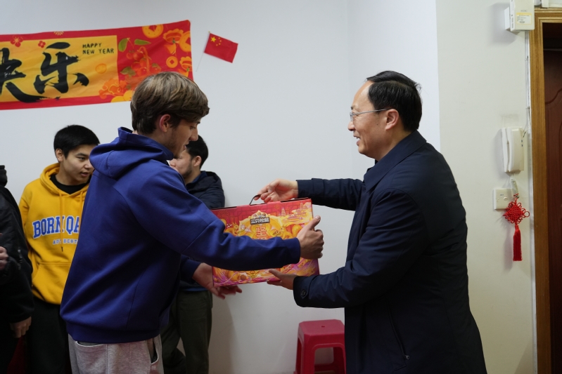 笑语声声里,杨旭东与留学生们亲切交流,细细询问大家的寒假生活安排,叮嘱学子们在汉过年的注意事项,还为每位留学生送上了满载心意的新春礼包。一份份礼包,饱含着学校的细致关怀与新春祝福,留学生们纷纷拿出自己亲手书写的“福”字、绘制的祝福卡片回赠,以最质朴的方式表达心中的感谢。来自蒙古的桑吉捧着亲手写的福字,笑着说道:“虽然远离家乡,但学校让我们感受到了家一样的温暖。”