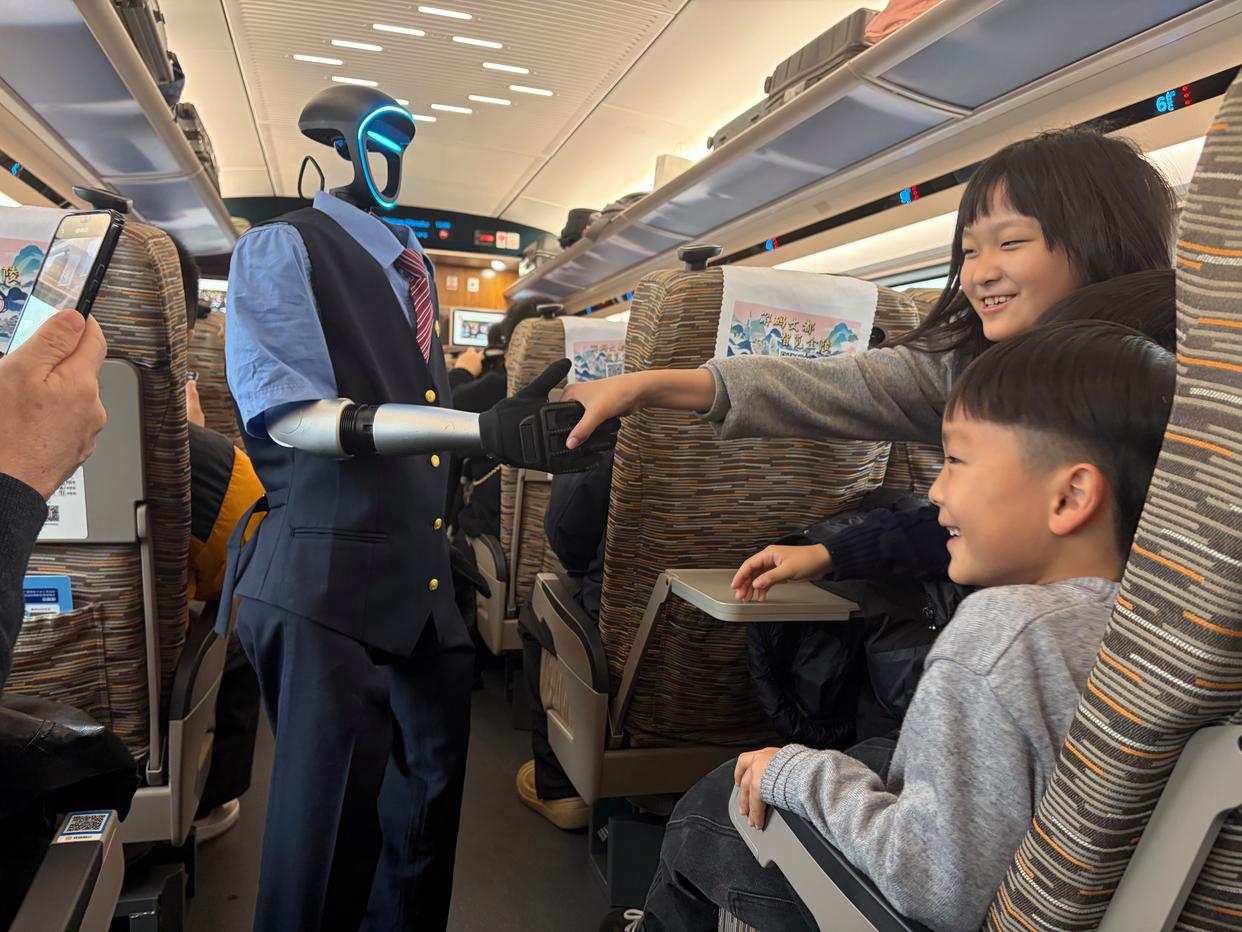 旅客陈女士带着两个孩子乘车,对这一创新服务直言惊喜:“尽管现阶段机器人乘务员的功能还在不断完善,但人形机器人出现在春运中,本身就是具有标志性的事件,这是科技深度融入日常生活的缩影,也是智慧春运、温馨春运的鲜活注脚。”