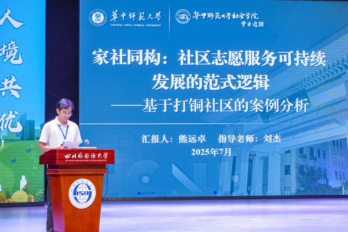他没有止步于完成实习任务,而是在实践中关注到“社区志愿服务可持续发展”的问题。他主动请教指导老师,尝试将实践感受转化为理论思考。最终,他的研究成果《家社同构:社区志愿服务可持续发展的范式逻辑——基于打铜社区的案例分析》在第十七届中国社会工作大学生论坛主论坛上发言,并荣获二等奖。