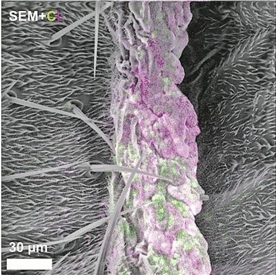 团队解释道,他们开发的新技术不发射光线,而是发射电子束。他们开发了一种特殊探针,可附着在目标蛋白上。当电子束激发探针时,其会发出可见光,此过程称为“阴极发光”。于是,同一束电子束便能提供两组关键信息:探针发出的彩色信号,以及电子散射形成的精细结构图像。该技术已在哺乳动物细胞及生物组织(如受真菌侵染的果蝇)中验证有效。