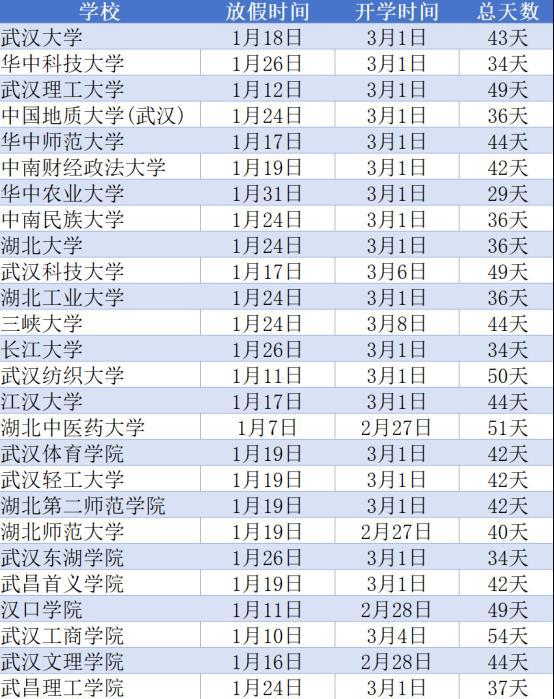 注:放假时间为学生放假时间;开学时间为正式上课前一天。信息来源各高校校历,具体放假时间以学校通知安排为准。