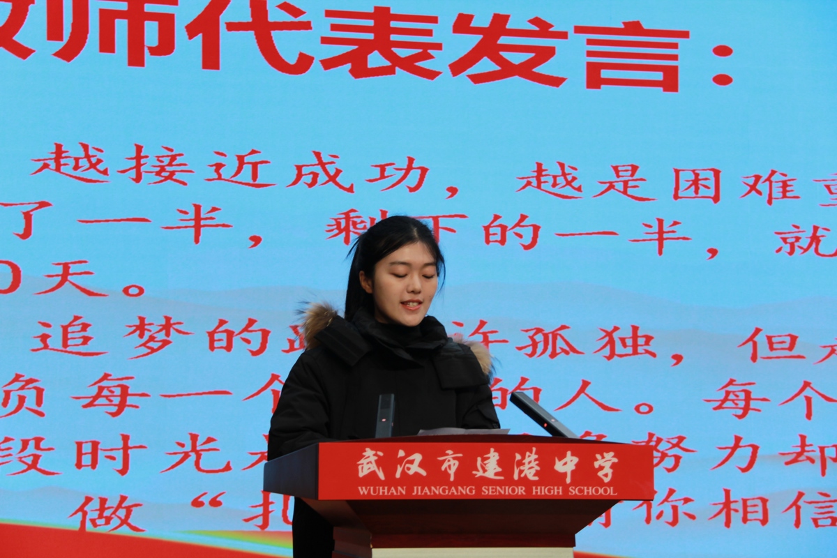 师者如灯,伴梦前行。教师代表匡佳竹老师上台表态,承诺全体高三教师将倾其所有、全程陪伴,做学子们最坚实的后盾。“时光不会辜负每一个努力的人,每个优秀的人都有一段沉默的时光,那段付出很多却收效甚微的日子,我们称之为‘扎根’。”匡老师的话语温柔而有力量,“请相信,扎根越深,花开越盛,愿大家在这百日里扎根蓄力,静待六月花开。”