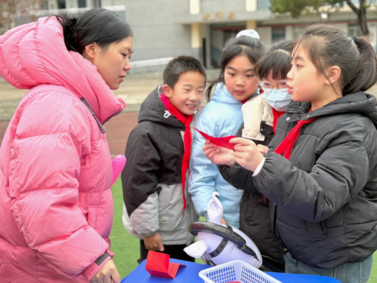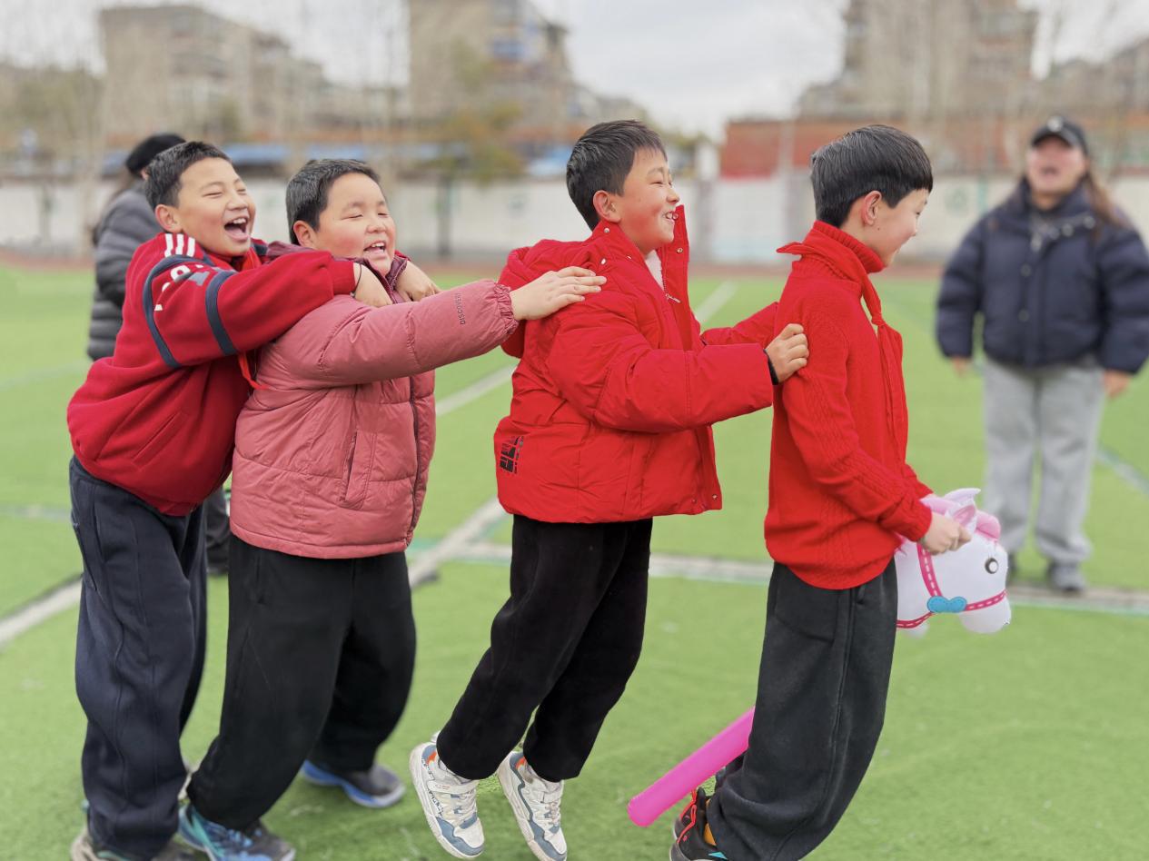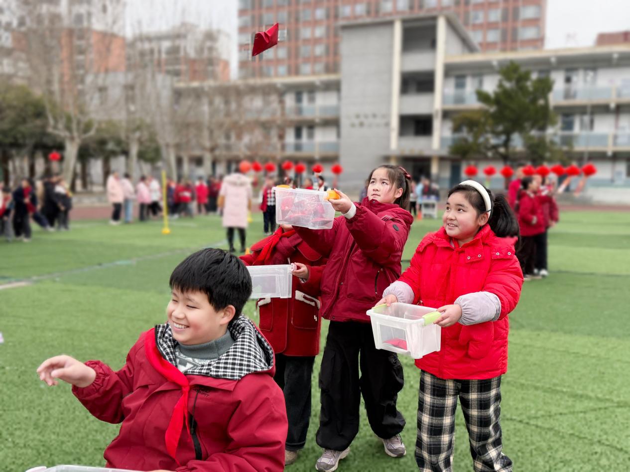 “爆竹声中一岁除,春风送暖入屠苏。”401班的竹马小队刚抽中对诗迎春的上联,队员周晨怡便脱口而出对出下联,小队成员们快步奔向接力区,整个过程干脆利落。而在同心接福关卡,402班的竹马小队却遇到了难题,几次接福袋全部落空,眼看其他小队即将追赶上来,队员们却没有慌乱,认真商量着调整站位和抛接节奏,“往左边一点,慢一点抛!”调整“作战方案”重新尝试,终于稳稳接住全部福袋,孩子们激动地击掌欢呼。402班的胡艺可开心地说:“一开始没接住的时候有点着急,还好有大家一起想办法。众人齐心,其利断金嘛!”403班的何若颖同学也自豪地说:“平时背的诗词居然在闯关中用上了,答对的那一刻特别有成就感,新学期我也要继续好好学!”看着孩子们在活动中展现出的团结与坚持,404班的冯娜老师满眼欣慰,“从组队练习到现场闯关,孩子们学会了沟通、懂得了协作,面对难关不气馁、互相搭把手,这正是成长中最珍贵的品质。”
