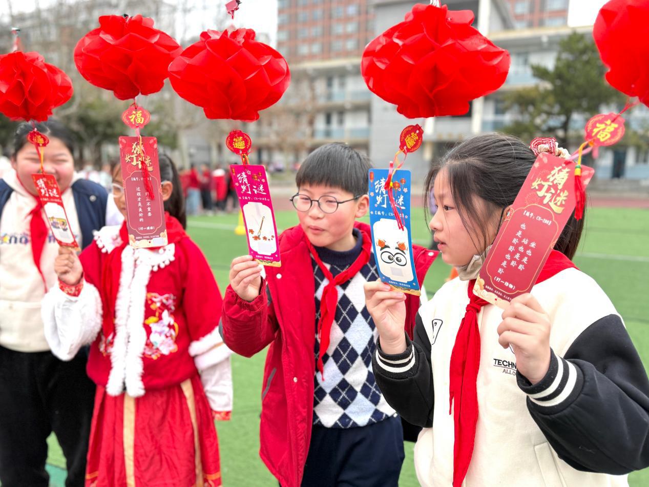 “快,我们抽这个,我来试试看!”“灯谜答案是不是‘三心二意’?大家再想想!”四支竹马小队斗志昂扬,排头同学稳稳跨上充气竹马,身后伙伴依次搭肩相随,整齐的队形踏着轻快的步伐,在赛道上奋勇向前。诗词对答、趣味猜谜、飞花令比拼、同心接福,一个个融传统韵味与趣味挑战于一体的关卡接连开启,现场呐喊声、欢笑声此起彼伏,热闹不已。