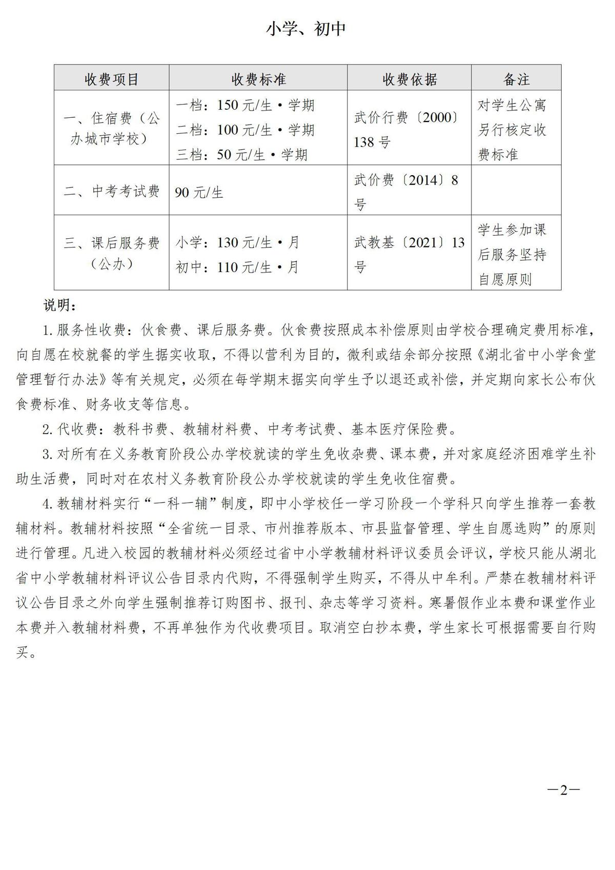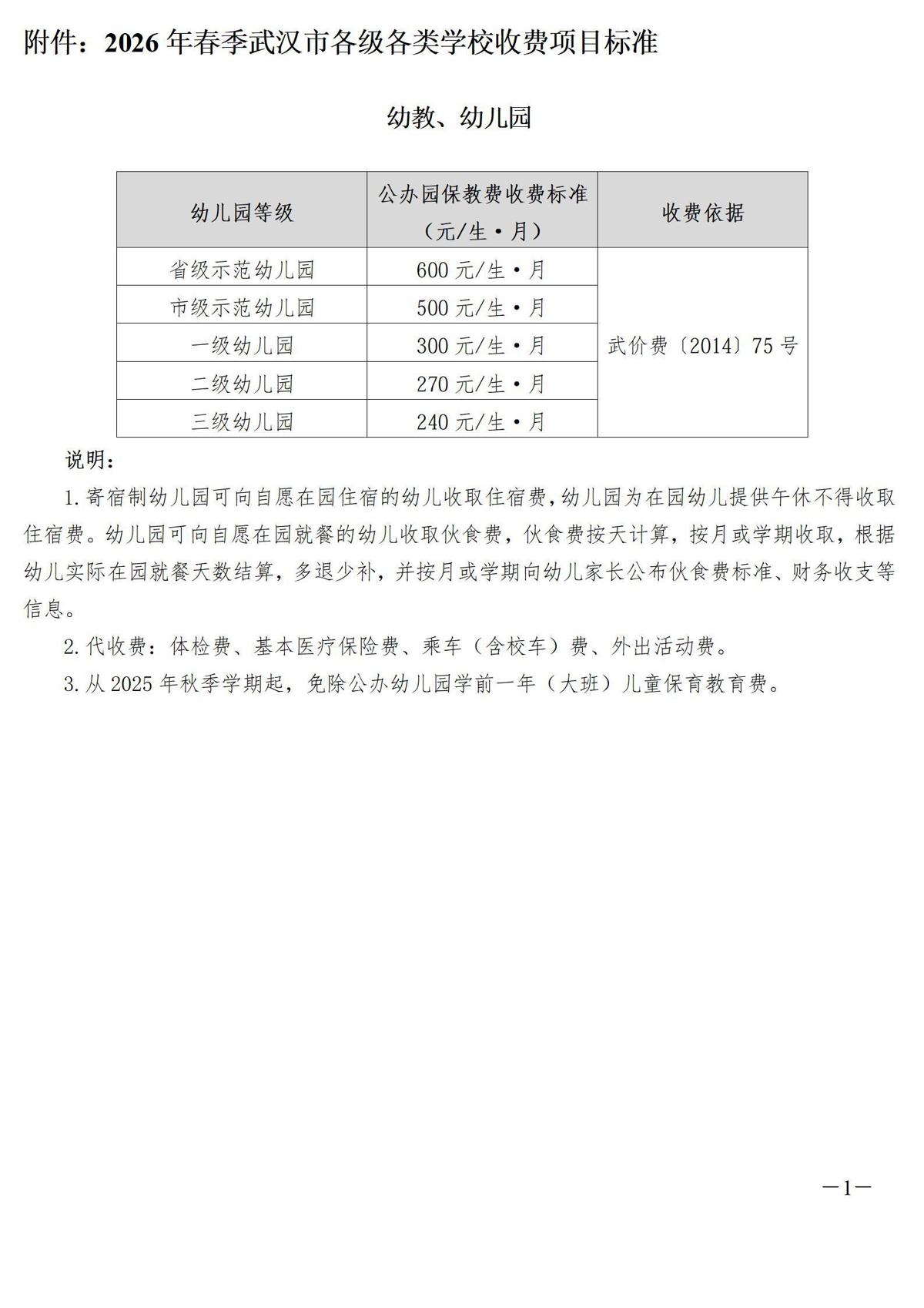 《2026年春季武汉市各级各类学校收费项目标准公示》