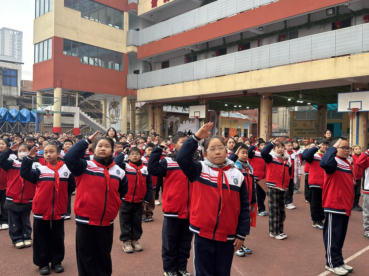 典礼上,学校对在寒假实践活动中表现突出的优秀班级和个人进行了表彰。田小霞副校长宣读了表彰决定,并颁发了“寒假实践活动优秀班级”奖状和“寒假实践小达人”奖品,以此肯定他们在假期中积极参与社会实践、践行劳动教育的成果。最后,在学生代表的领誓下,全体学生庄严宣誓,承诺“在家做好孩子,在校做好学生,在社会做好公民”,用铿锵有力的誓言表达了新学期“践行三好、马不停蹄”的坚定决心。