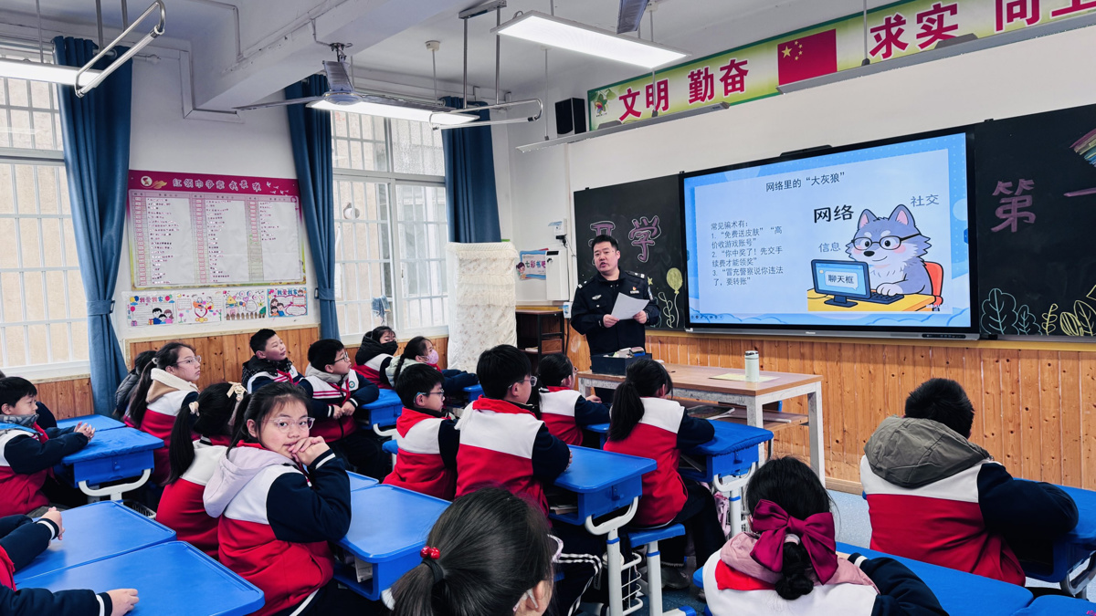 此外,学校还组织法治副校长、交通警察及家长志愿者进校园开展讲座活动,他们结合PPT,从校园欺凌、交通出行、网络管理、心理健康及文明行为规范等方面进行了细致讲解和强调。通过生动的案例和细致的叮嘱,切实提升了学生的安全防范意识和文明素养,将“安全护航”落到实处。