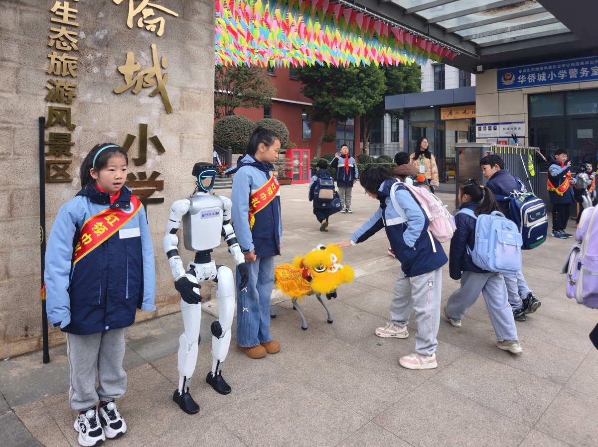 3月4日,武汉市东湖生态旅游风景区华侨城小学以“智启未来梦,骐驰锦绣程”为主题开启新学期,将非遗传统文化、智能科技与健康教育有机融合,特别引入机器人与机器狗亮相开学典礼,为全校师生带来了一场传统与未来交融的开学盛宴。