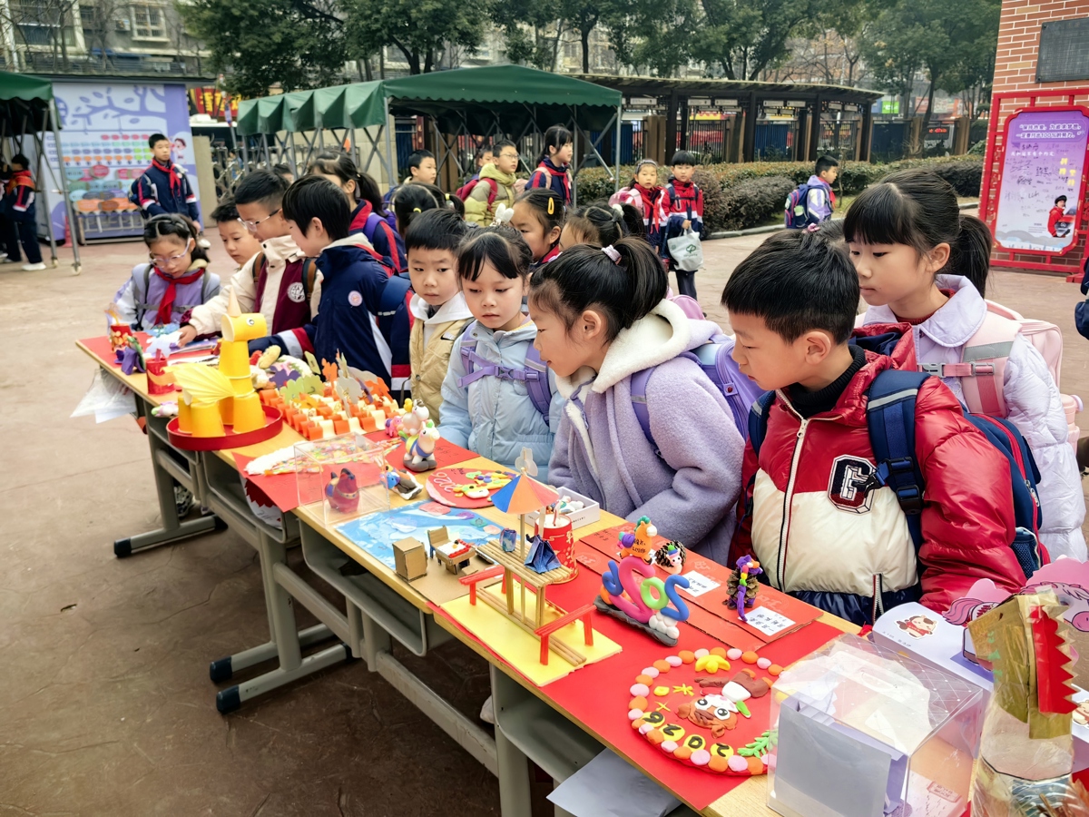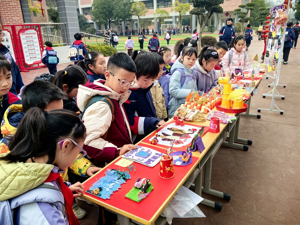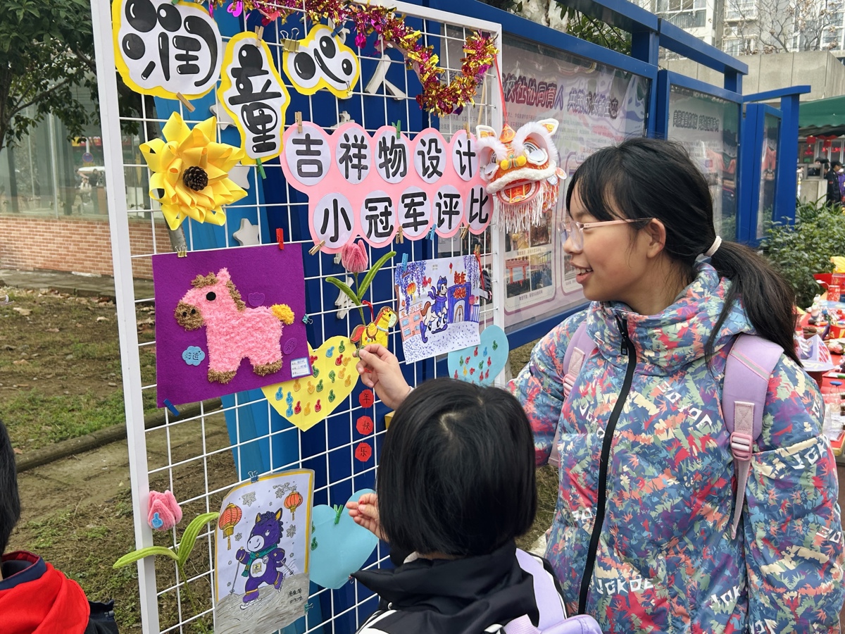 清晨的校园洋溢着新学期的喜悦。校门口陈列着同学们在寒假期间精心设计的“紫润吉祥物”作品,造型各异、充满童趣。二(3)班的肖俊亦介绍道,自己的作品融入了校园里养殖的小兔子以及护眼蓝莓等元素,在观察、构思和动手制作的过程中,真切地感受到了劳动带来的快乐与成就感。同学们有序地排起队伍,为自己喜爱的设计作品贴上“大拇指”,用最纯真的方式,为身边的“设计小冠军”点赞。