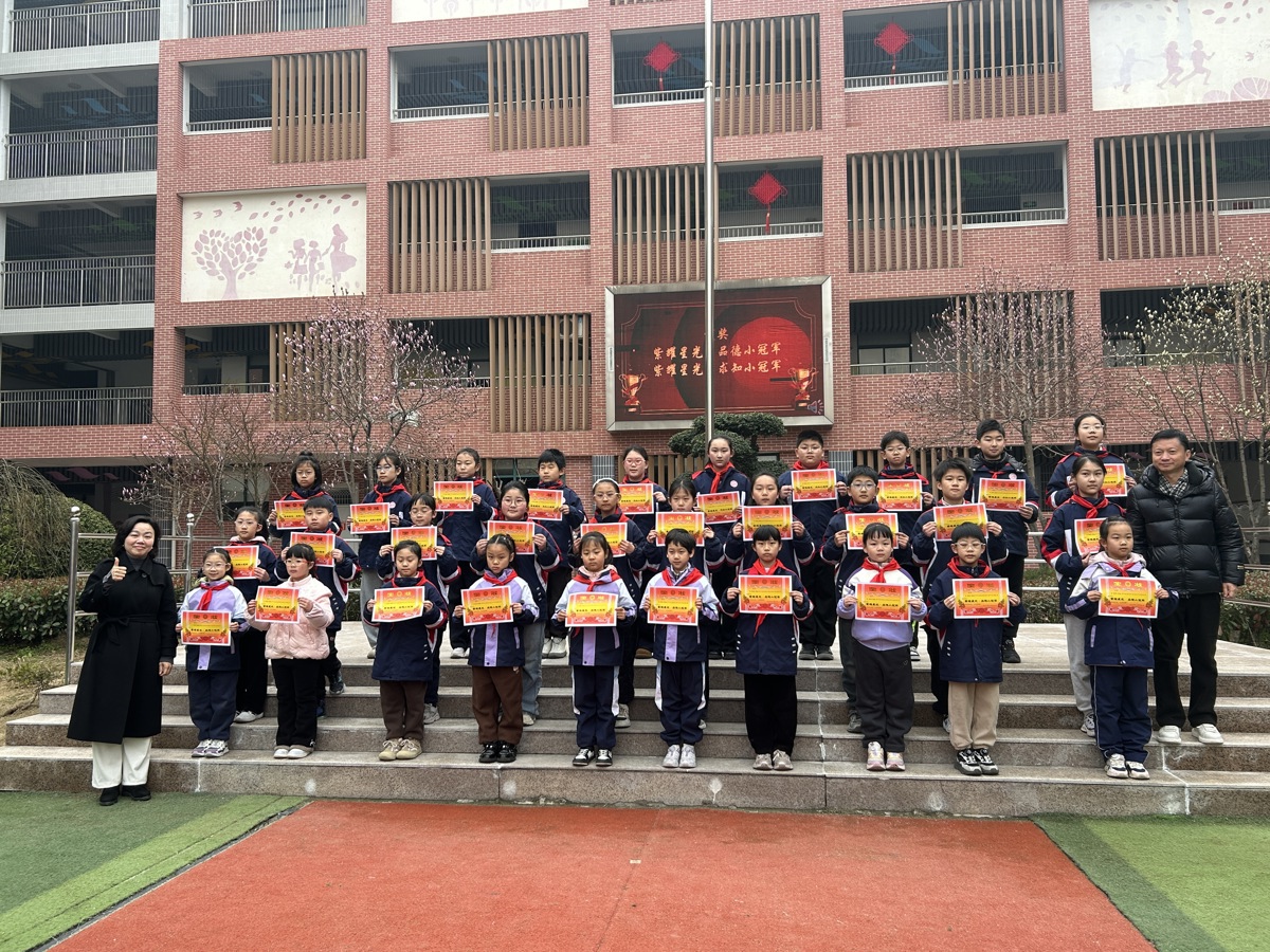 活动现场,学校为寒假期间德智体美劳全面发展的“小冠军”们颁发荣誉。六年级(1)班黄梦晴荣获“紫耀星光・运动小冠军”称号。她坚持每天下午在小区球场踢足球,认真做好热身与放松,科学锻炼,不仅练就了强健体魄,也培养了坚韧意志。“运动让我学会了坚持和自律,我会以奥运冠军为榜样,遇到困难不轻易放弃。”黄梦晴还分享了自己的运动心得,建议同学们多进行耐力跑和跳跃类练习,增强体质。