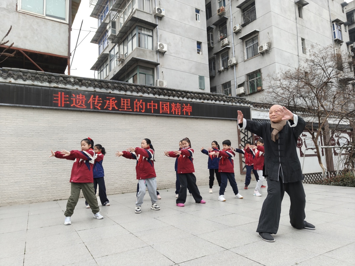 凝神静气、认真习练,昙华林小学的学子们在非遗纯阳拳传承人范志刚的指导下,起势、沉肩、行拳一气呵成,刚柔相济、整齐有力。伴随着刚健舒展的拳法,“我要做了不起的中国人”的铿锵誓言回荡校园,尽显昙华少年昂扬向上的精神风貌。