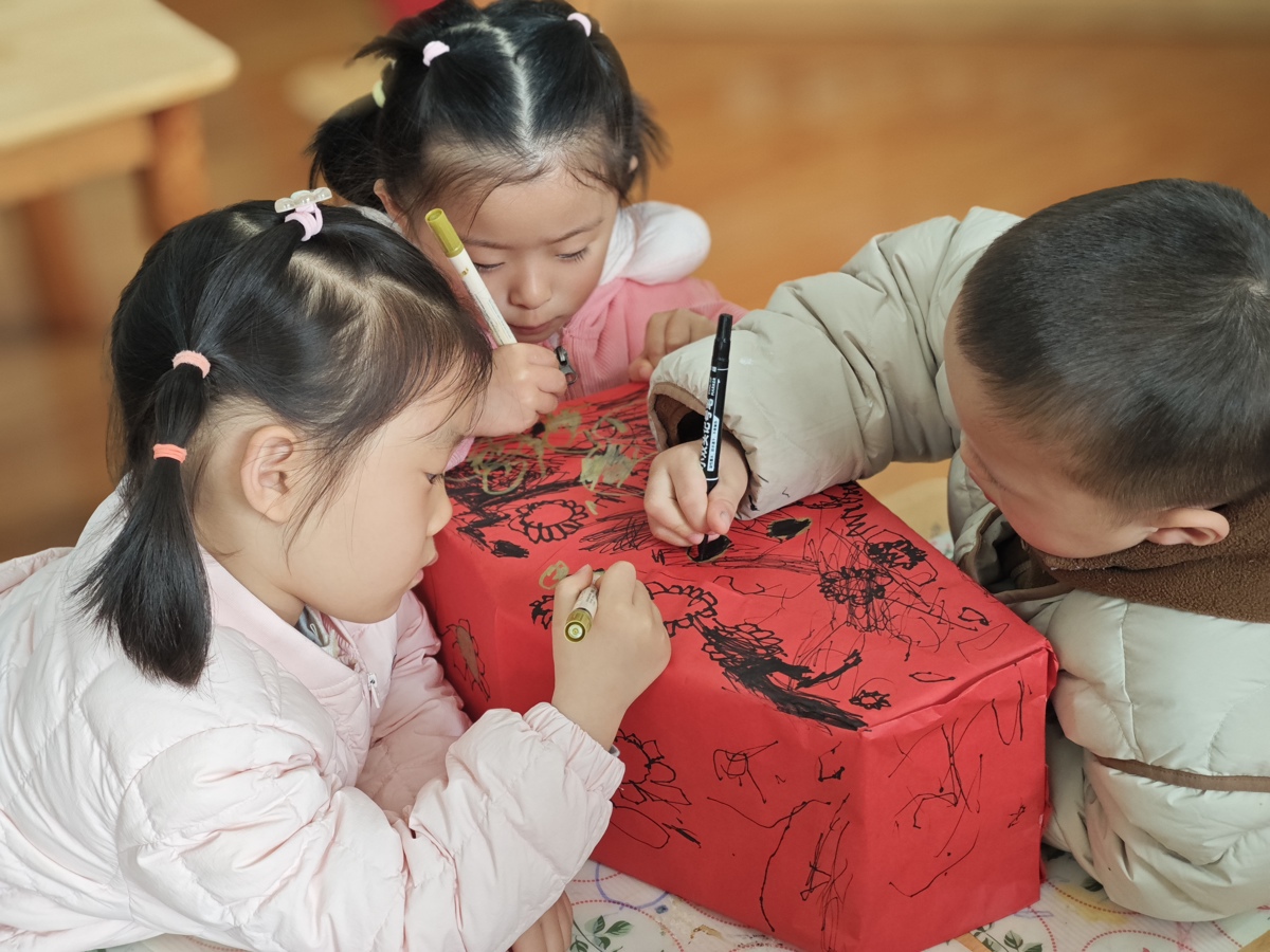 大一班的孩子在了解楚人祈福习俗后,用画笔画出新学期心愿。最受欢迎的环节是抽取“好运盲盒”,里面装着“当值日生一次”“帮同伴整理水杯”等劳动类奖励券。抽到券的孩子满脸期待,已经开始商量什么时候去履行“职责”。