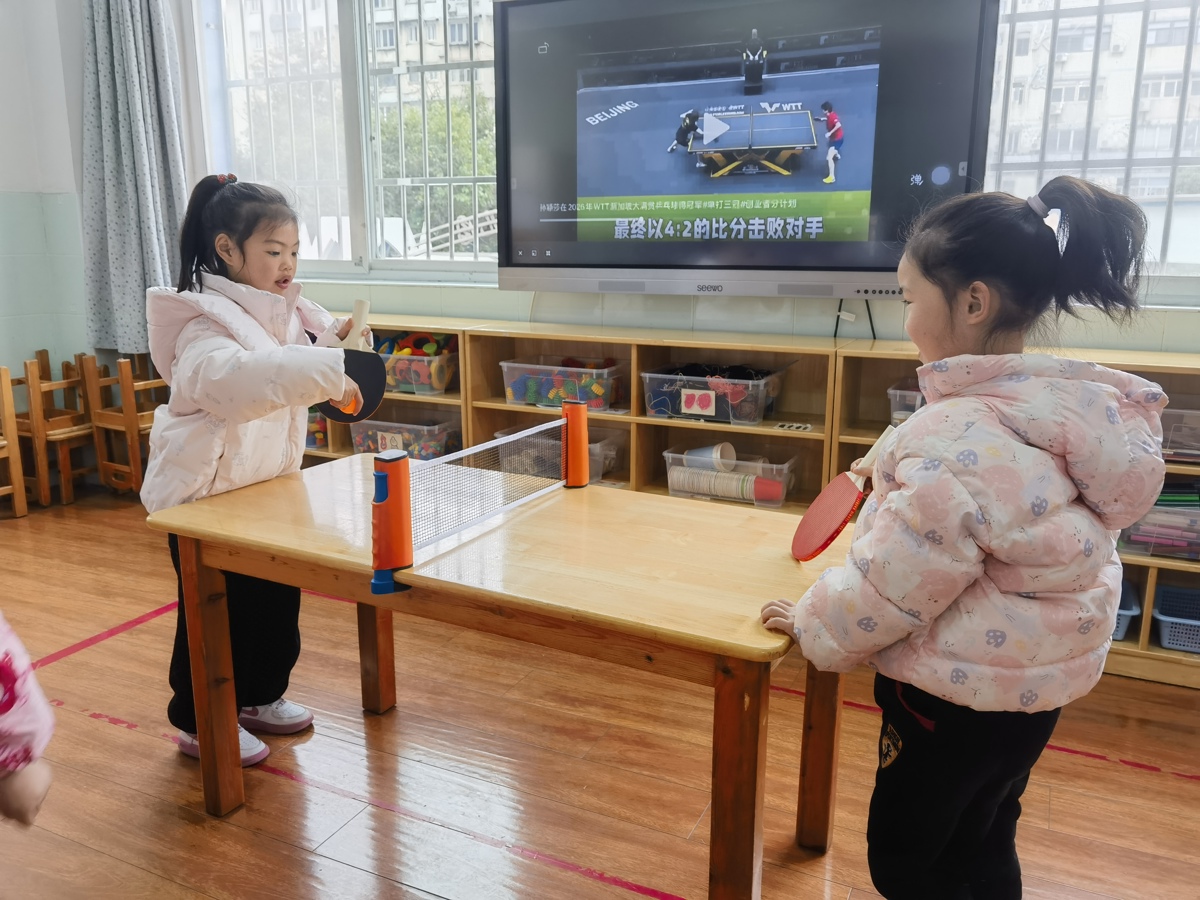 大二班的教室科技感十足。机器人表演视频刚播完,孩子们就围住了老师提问。结合AI应用、无人驾驶等话题,老师展示了人工智能在日常生活中的应用。随后的人机互动和桌面乒乓球游戏,让孩子们亲身体验了科技与运动的结合。