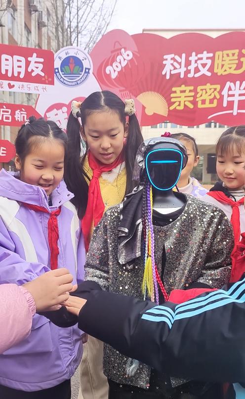 校门口,身穿华丽服装的机器人不仅能互动问好,还能与同学击掌;开学典礼上,机器狗不再是静静陈列的展品,而是能和学生们一起跳舞、甚至过招武术的“新同学”。3月4日,武汉经开区奥林小学的两个校区同时上演了一场充满未来感的春季开学典礼,将AI技术深度融入了小学生的校园日常。