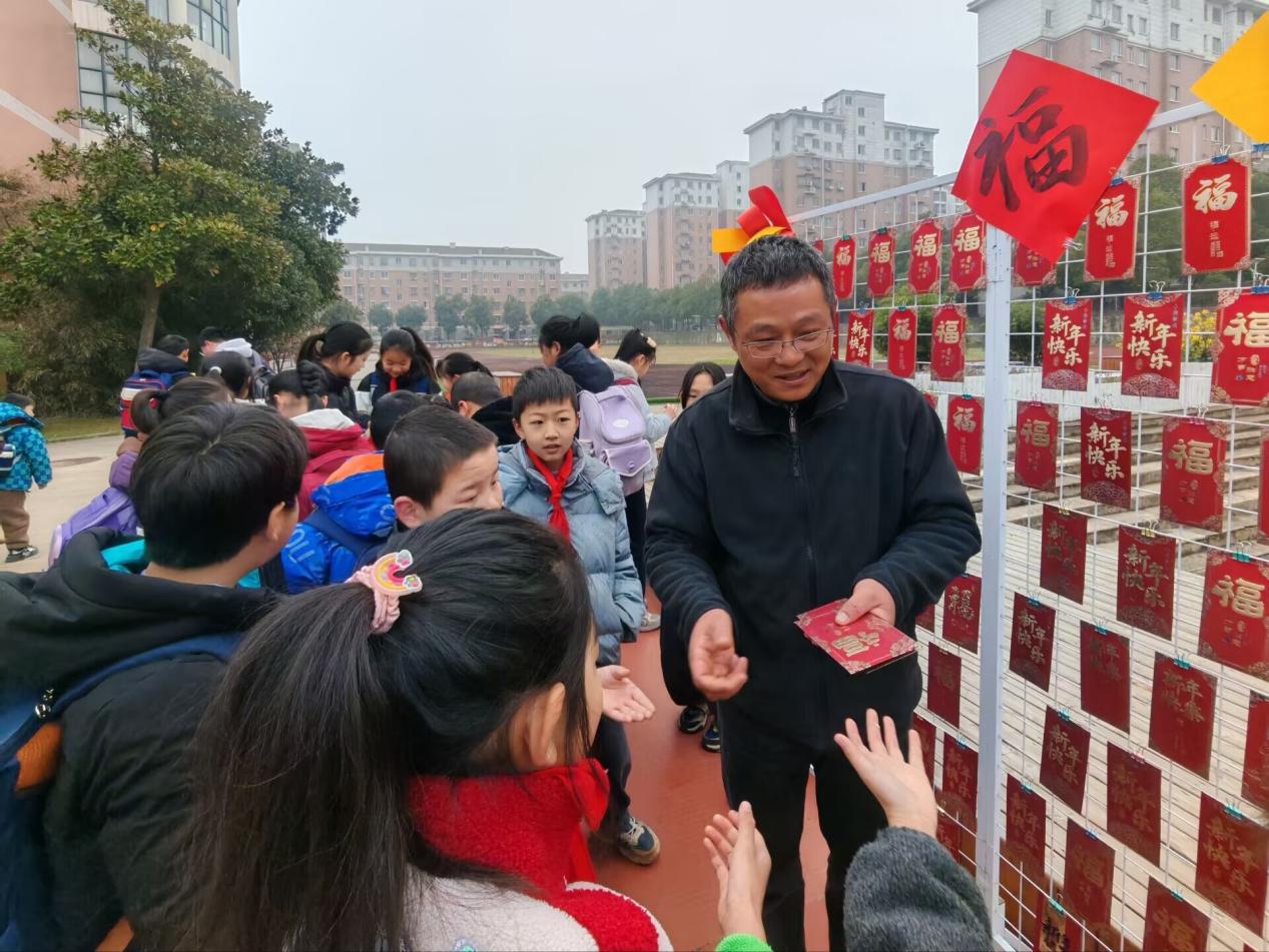 最受同学们欢迎的当数“马年福气包”红包墙,老师们守在红包墙旁,笑着为每一位返校学子递上红包,“宝贝,新学期天天开心!”“新的学期,愿你学有所获!”一句句暖心祝福伴着红包送到同学们手中。红包藏着满满的温暖——阳光心语祝福书签,同学们举着书签开心地说:“这个书签太特别了,我要夹在课本里,每天都能看到暖心的话!”拿到书签的同学们纷纷和老师、同学合影,把这份开学的美好珍藏,带着这份美好奔赴新学期。