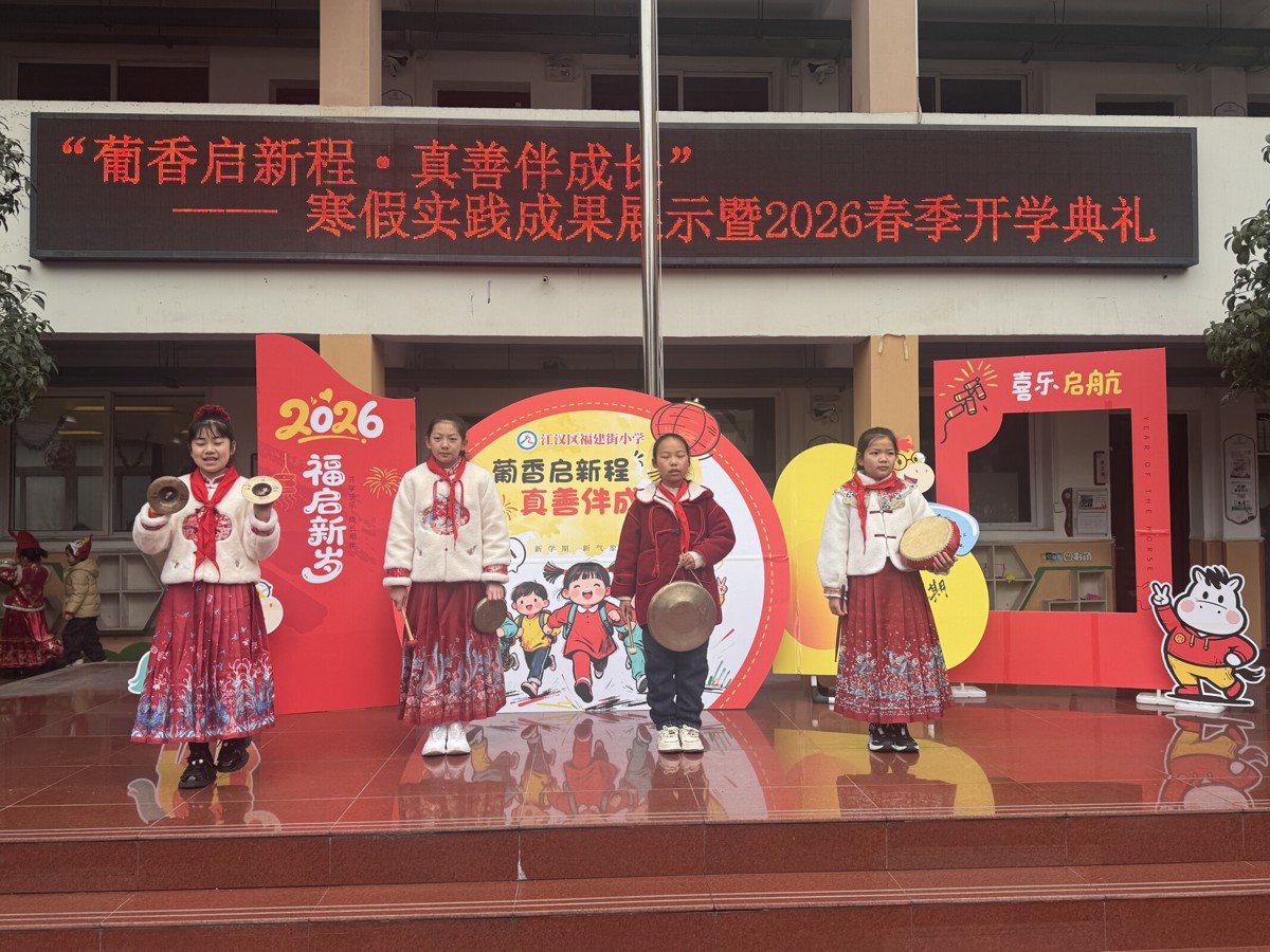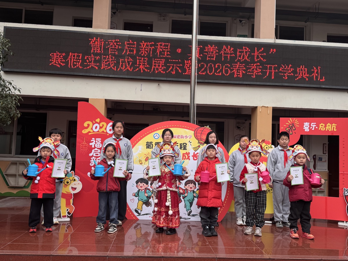 寒假里,福娃们可没闲着。“荆楚年味、葡香巷韵、五育实践”系列活动让他们收获满满。成果展示环节,二年级的小舞者们率先登场,一支《祝福你》暖场舞活力四射,直接把气氛点燃。紧接着,胡康乐、程思琪等优秀学生代表上台分享假期感悟,学校还对表现突出的“真善福娃”进行了表彰,送上特制的葡萄币兑换券。