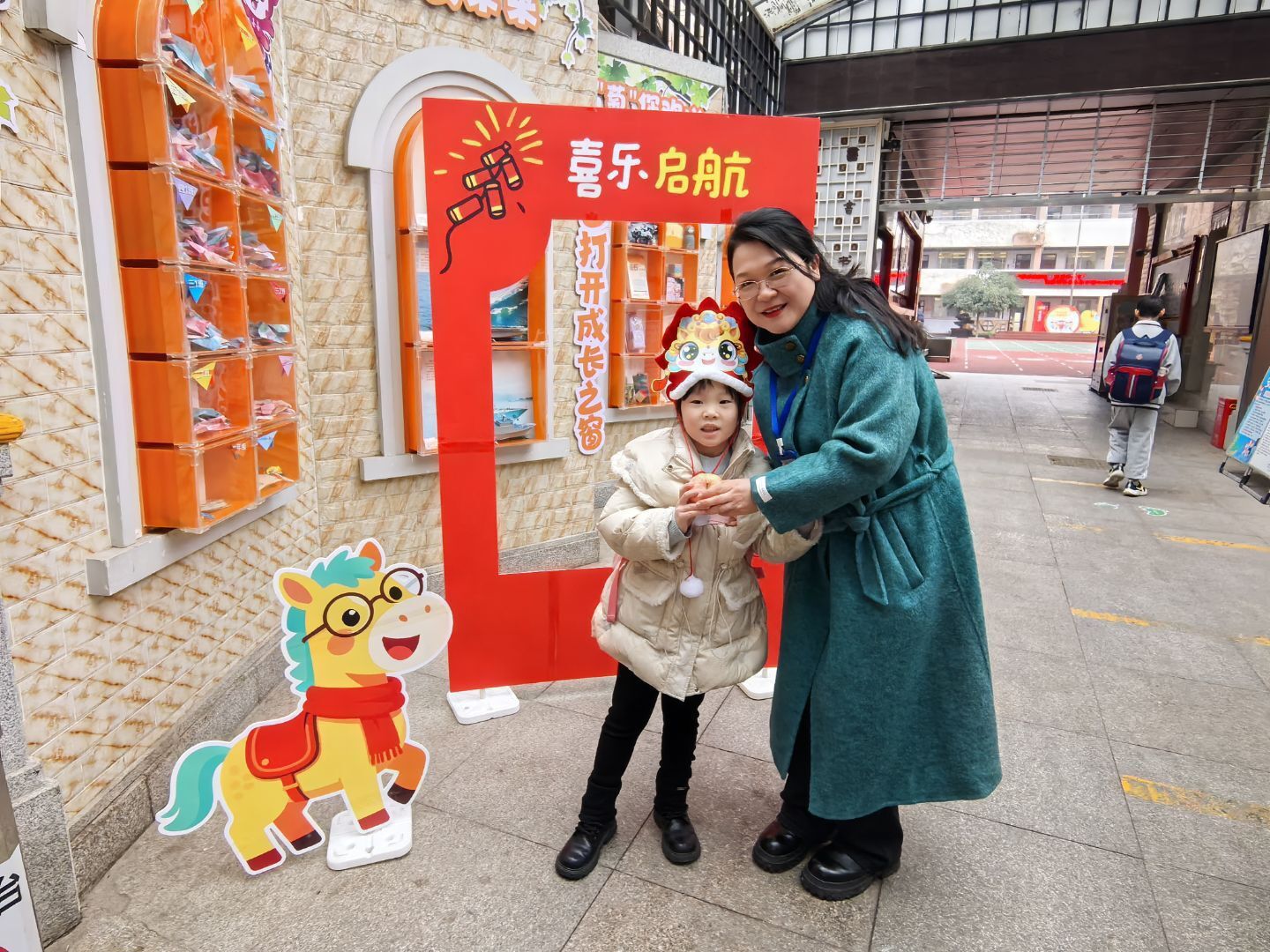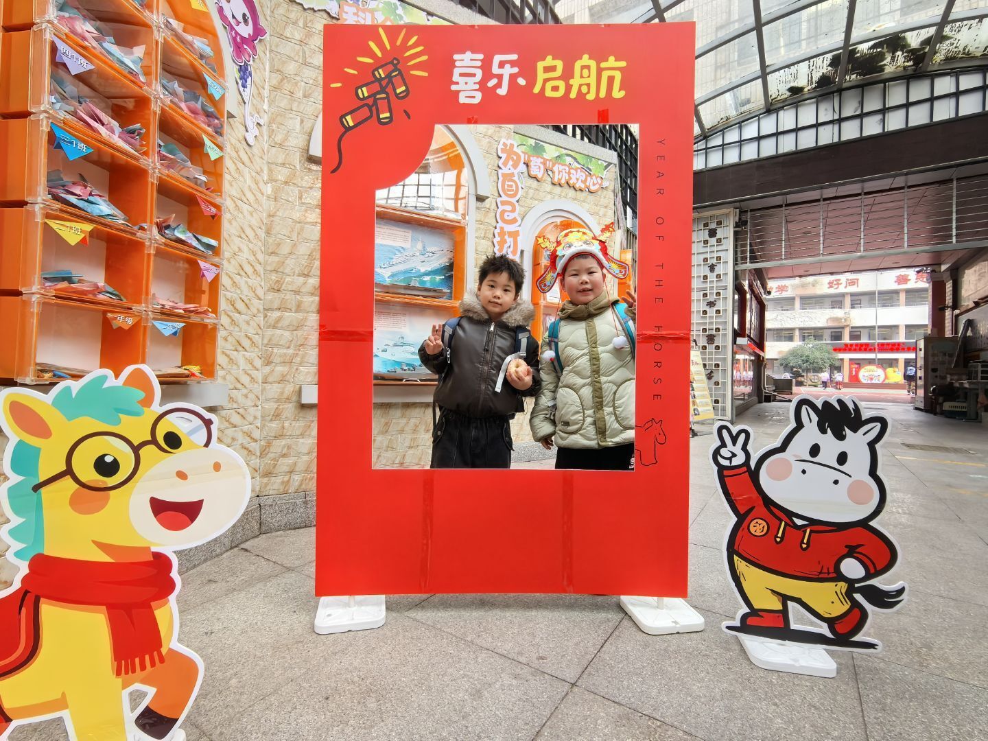 一大早,低年级的萌娃们就戴着自制的马头头饰,踏着欢快的步伐走进校园。一个个摇头晃脑的“小马驹”,瞬间把开学氛围拉满。