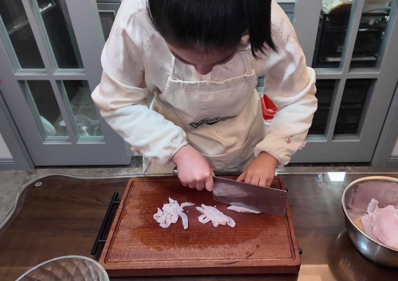 这可不是简单地下厨房。一大早,祖孙俩就直奔菜市场,精挑细选了一条胖头鱼。回到家,外公手把手地教,戴书玥认真地学。去骨、刮蓉、调味、摔打……每一步都有讲究。