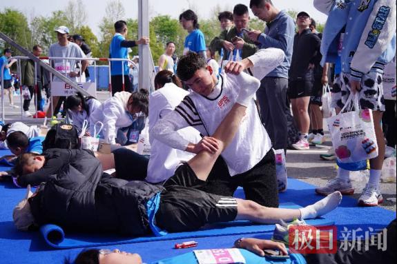 药香还飘进了企业、景区和赛事现场。在美的冰箱荆州工业园,师生团队带领工人练习八段锦舒缓疲劳,发放中药茶饮解暑降温;沙市洋码头文创园的中医药养生市集上,市民在香牌DIY中感受指尖药香;荆州马拉松赛道旁,“中医药健康服务点”的拉伸按摩、艾灸理疗让参赛者惊叹不已——半程马拉松冠亚军体验后感叹“像给肌肉灌了参汤”“中医太神奇了”。当日,服务点共处理肌肉痉挛237例、关节扭伤58例,发放中药敷贴200余包。