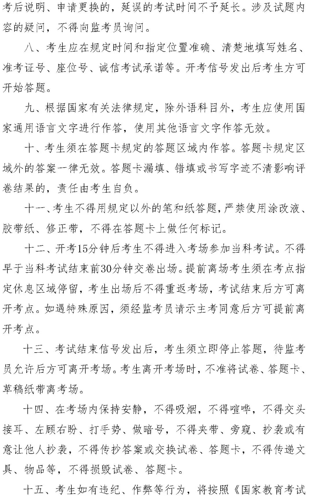 1.考生进入考点时,须通过智能安检门等设备接受安全检查,请合理规划出行路线,预留充足时间,以免延误考试。