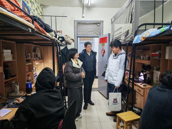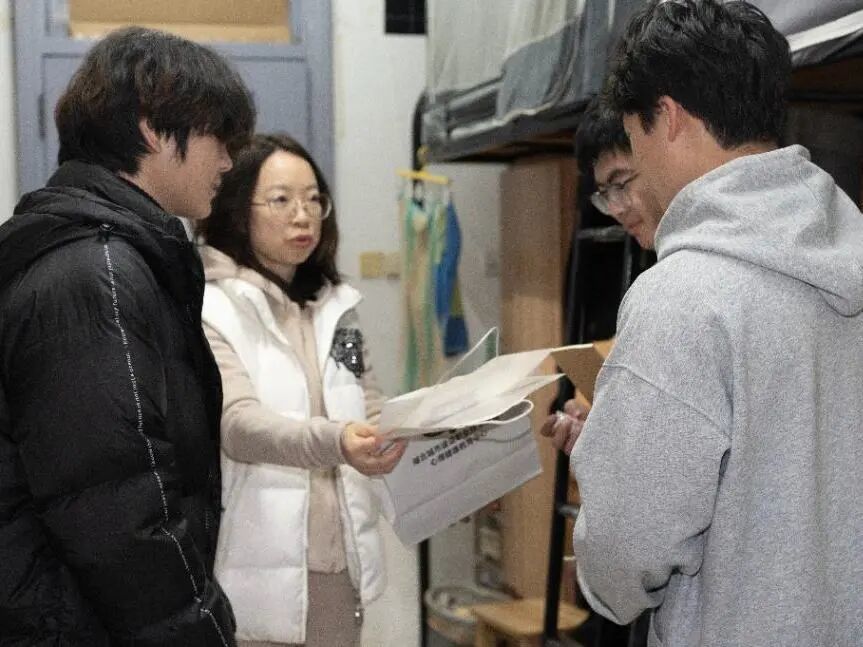 “同学,元宵节快乐!”党委副书记胡俊、副校长王彩云带领心理健康教育中心的老师、学工处及各二级学院的副书记,在这个团圆之夜走进学生寝室,老师们从“你们家乡元宵吃什么”聊起,话题自然地延伸到学习、生活、未来的规划,同学们主动分享假期里的点滴趣事、新学期的目标规划。