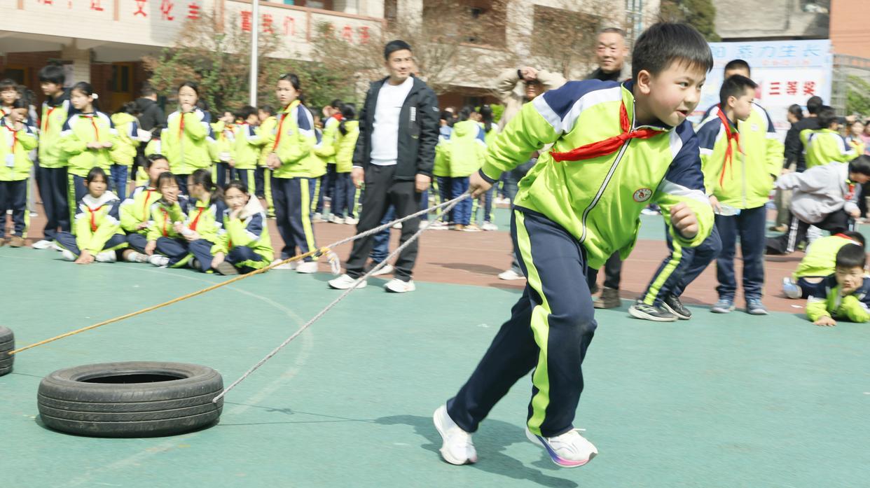 在“开学嗨两天”趣味运动会上,学生们正在参加“热血酷跑”项目。受访者供图校长黄丽娟说
