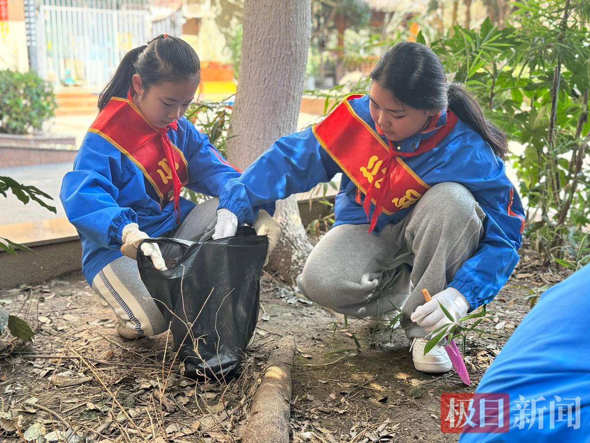 走出校园,“护绿小先生”更是化身环保先锋,在学校老师带领下和同学们走进汉中街道马家社区,清扫社区花坛里的杂物,向邻里普及生态保护与植绿护绿知识,号召社区居民共同参与公共区域护绿行动……“我向社区的叔叔阿姨爷爷奶奶宣传了植树节的意义,感受到劳动的快乐!”四年级(3)班吴雨辰说。同学们将校园的劳动精神与环保理念传递到社会的各个角落,在志愿服务中树立“好公民”的环保责任与服务精神,实现五育融合育人效果从家校到社会的全方位延伸。