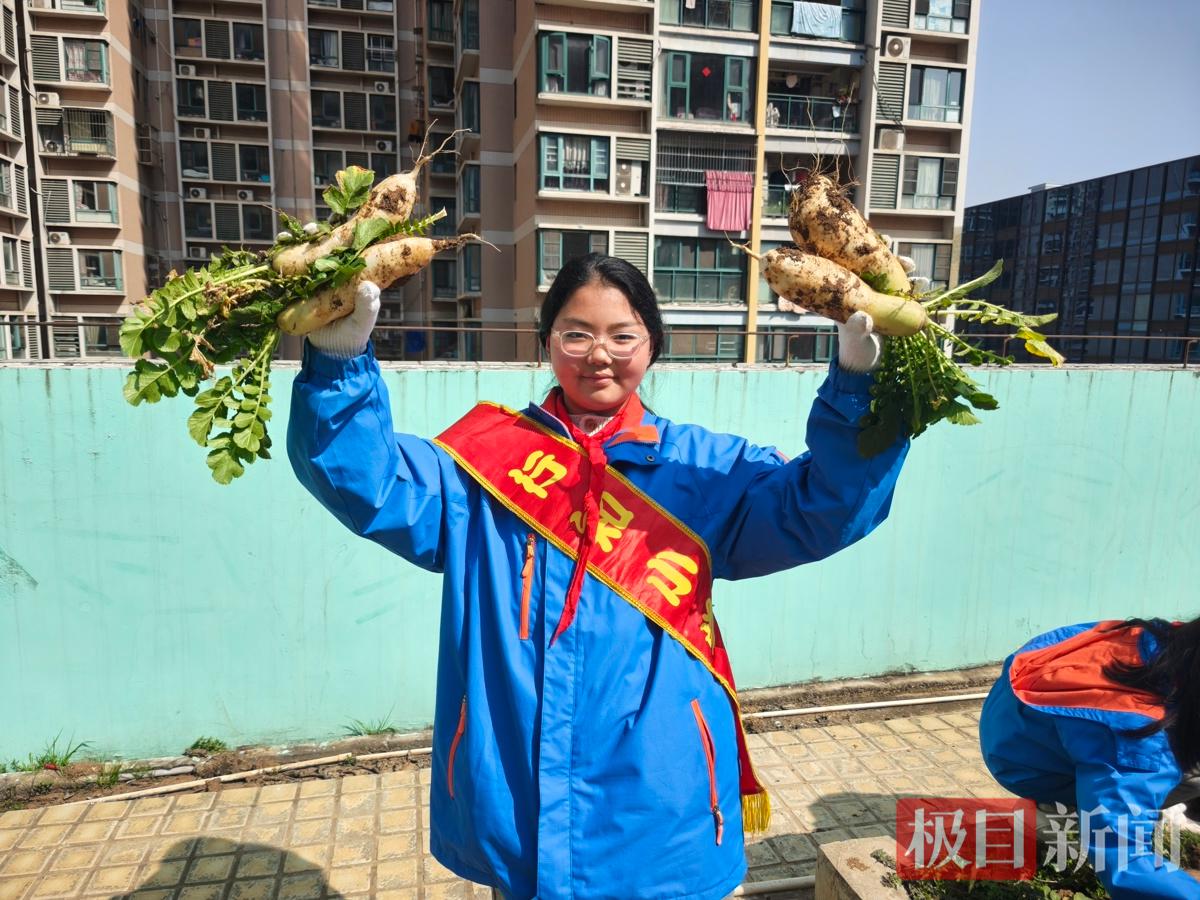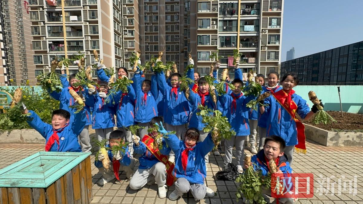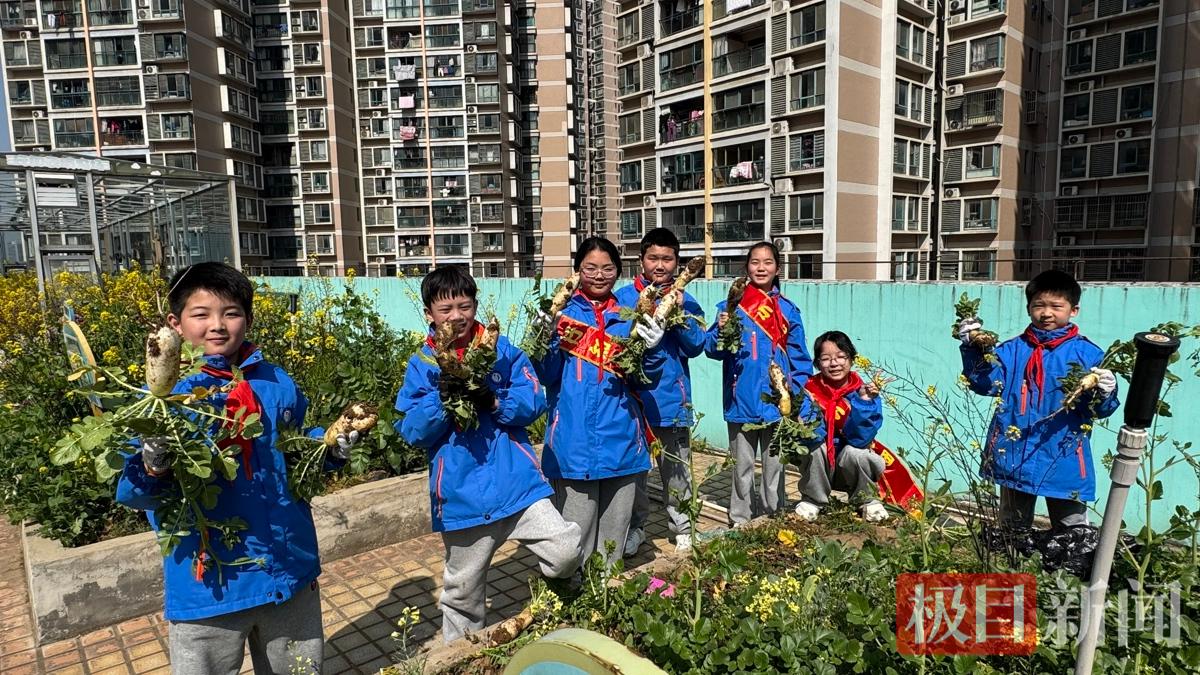 现场,大家还共同制作“小先生护绿牌”,标注种植品种、班级与护绿心愿并悬挂在田间。一张张心愿卡汇聚成校园“植绿祈福墙”,让劳动实践与美育、情感教育相融相通。学校还设立校级“农场护绿责任岗”,由小先生牵头制定长效养护计划,带领同学们轮流浇水、除草、观察记录,在长期坚持中锤炼劳动实践能力,让绿色希望在校园持续生长。