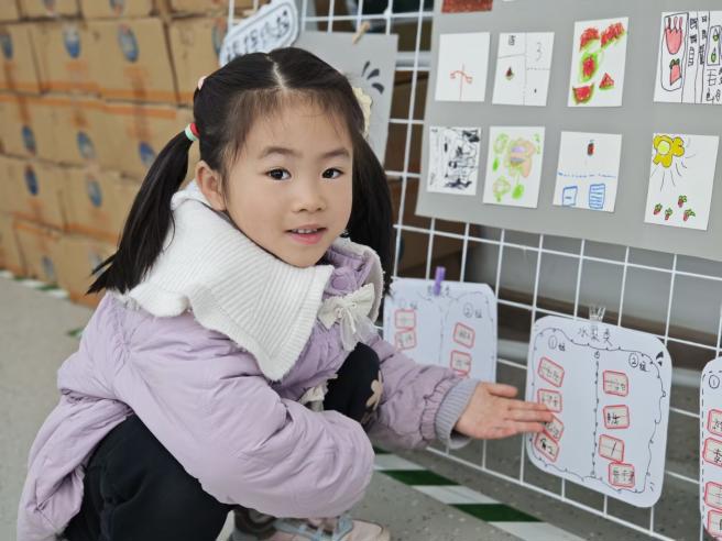 科普课后,孩子们循着自己的种植心愿自主分组,分成水果组、蔬菜组、鲜花组三大组别。各组成员化身小小设计师,精心创意制作专属种植牌,认真标注小组名字、种植时间等信息。
