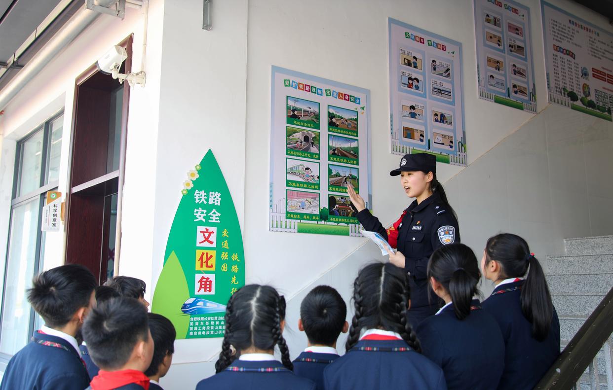 3月13日,合肥铁路公安处黄山站派出所民警在安徽省黄山市黄山育才学校开展铁路安全教育主题活动,普及铁路安全知识,提高师生的安全防范和自我保护意识。