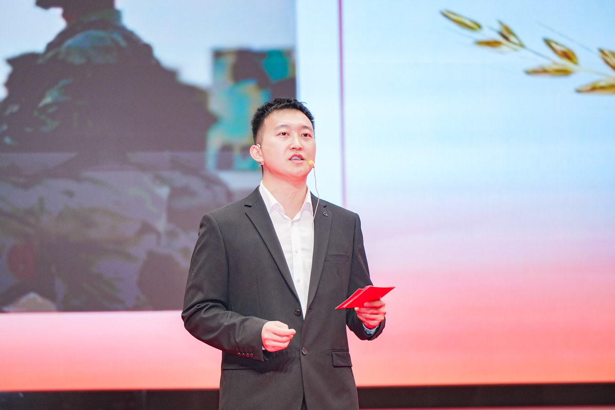 随后,该校校友、九三阅兵参训代表王鹏走上讲台,回忆在天安门广场守护国旗、接受检阅的热血瞬间,一段与国旗相伴的青春记忆,打动在场无数师生。同时,该校退役大学生士兵、国防迷彩团代表郝建设也向大家分享了自己从军营护旗到校园传旗,守护国旗荣耀的心路历程。