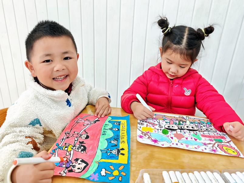 青山一幼绿地园中三班活动室里,小画家们瞬间变身“汉马追梦人”,趴在铺满彩纸的桌子上,小手握着画笔涂涂画画,脑洞大开的创意里满是青山印记:江滩的风筝飘出了画纸边缘,粉粉的樱花缀满了汉马樱花跑道。“你看,我给运动员画了翅膀,还画了青山的樱花树,这样他们跑过樱花跑道时,就能跑得更快、更开心啦!”柚柚举着自己的画作蹦蹦跳跳地展示,眼里闪着亮晶晶的光。班主任卢莎笑着蹲下身,轻轻摸了摸她(他)的头:“每一笔色彩,都藏着孩子们对汉马的期待,更藏着对家乡青山的热爱,这份祝福,比任何礼物都珍贵。”