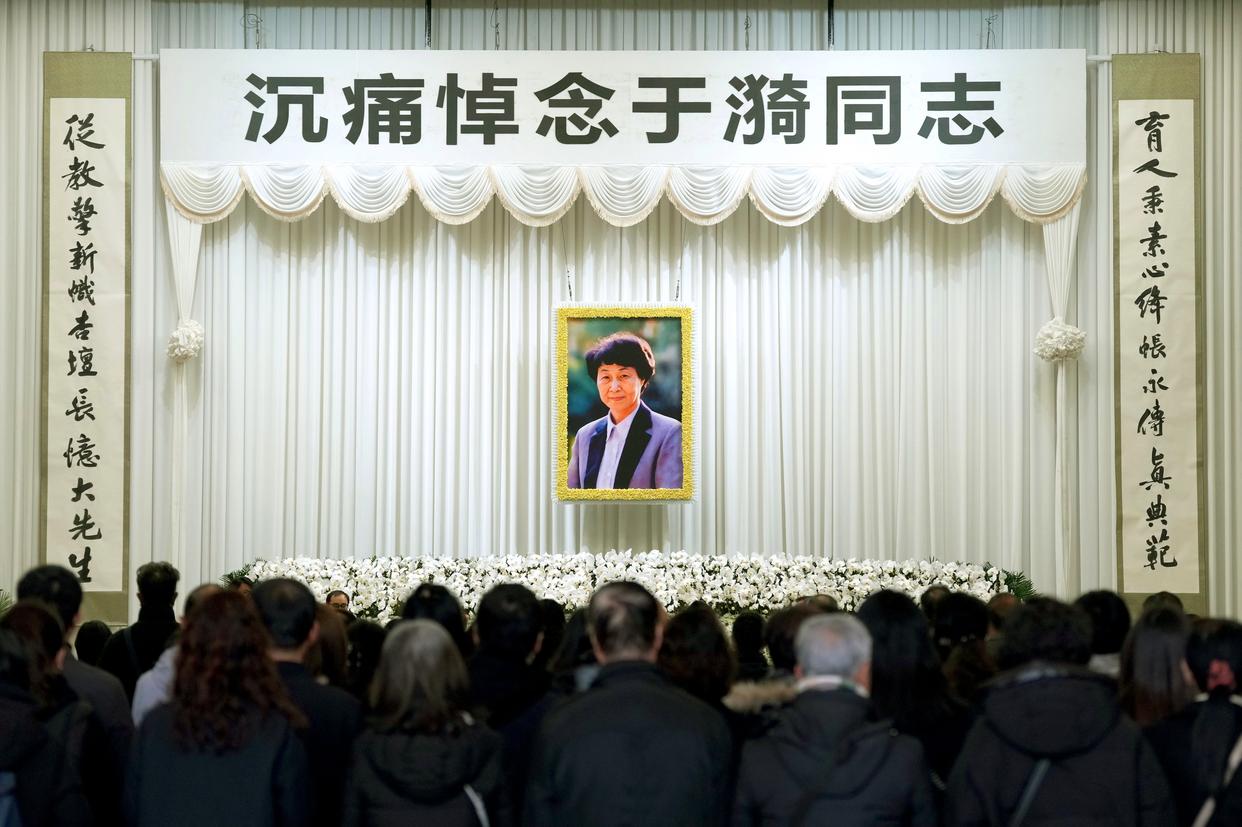 3月18日,各界人士前来参加于漪老师遗体告别仪式。新华社记者 刘颖 摄