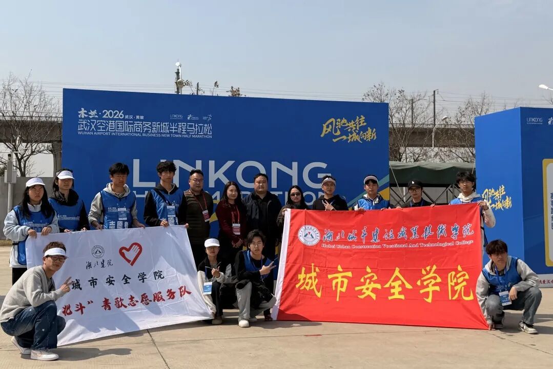春雨润江城,奔跑正当时!3月15日,2026武汉空港半程马拉松雨中开跑,八千跑者驰骋赛道,湖北城市建设职业技术学院城市安全学院的218名志愿者,以另一种方式“跑”完这场马拉松。